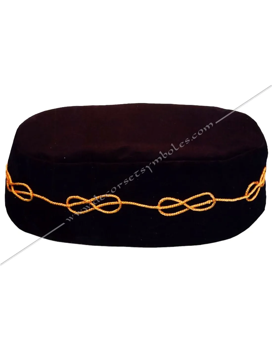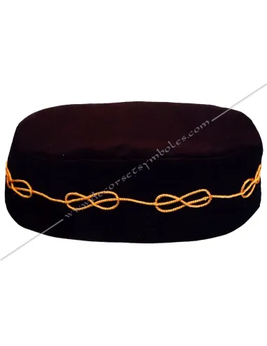 Calot, coiffe ou chapeau maçonnique de Maitre en tissus satiné noir avec broderies galon Or chaine d'union ou lacs d'amour