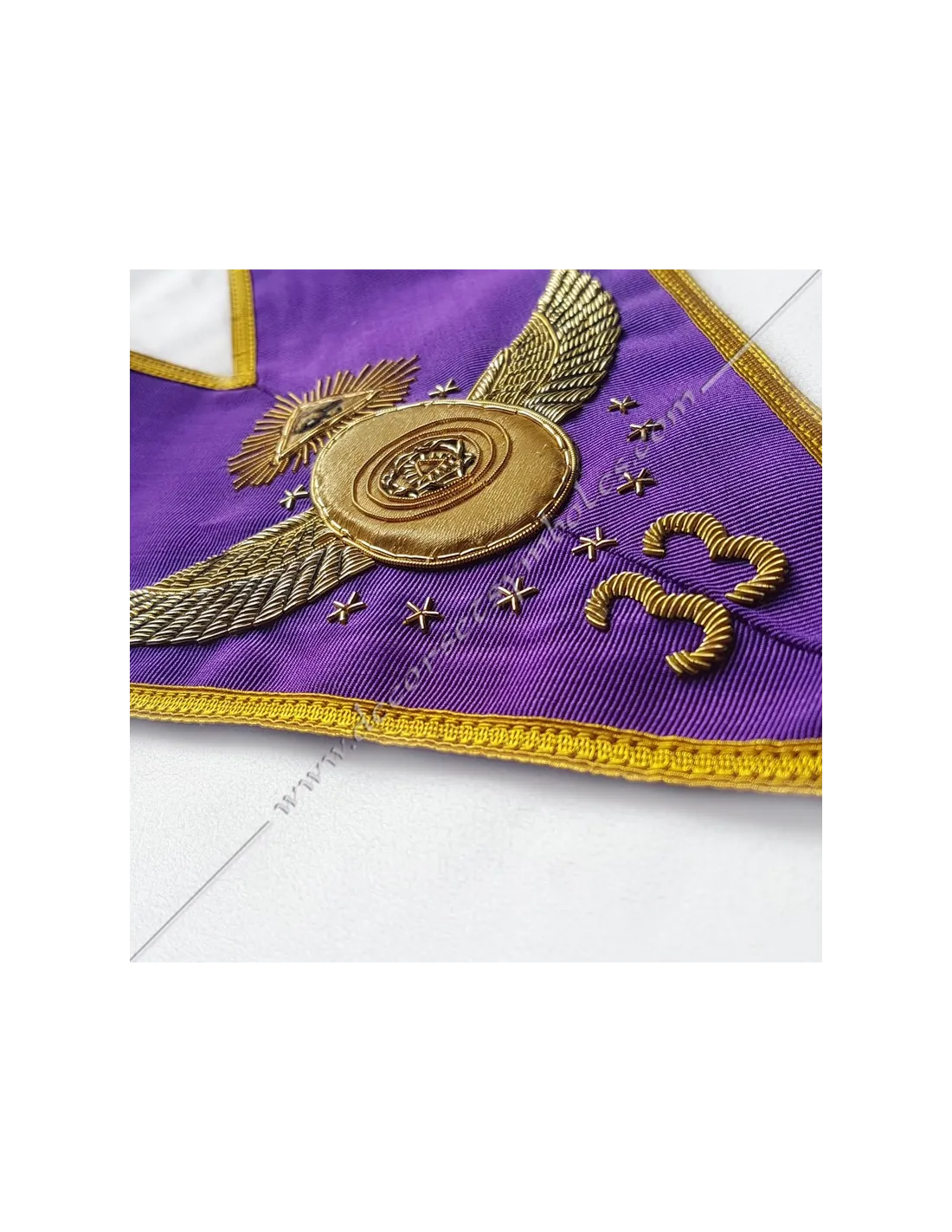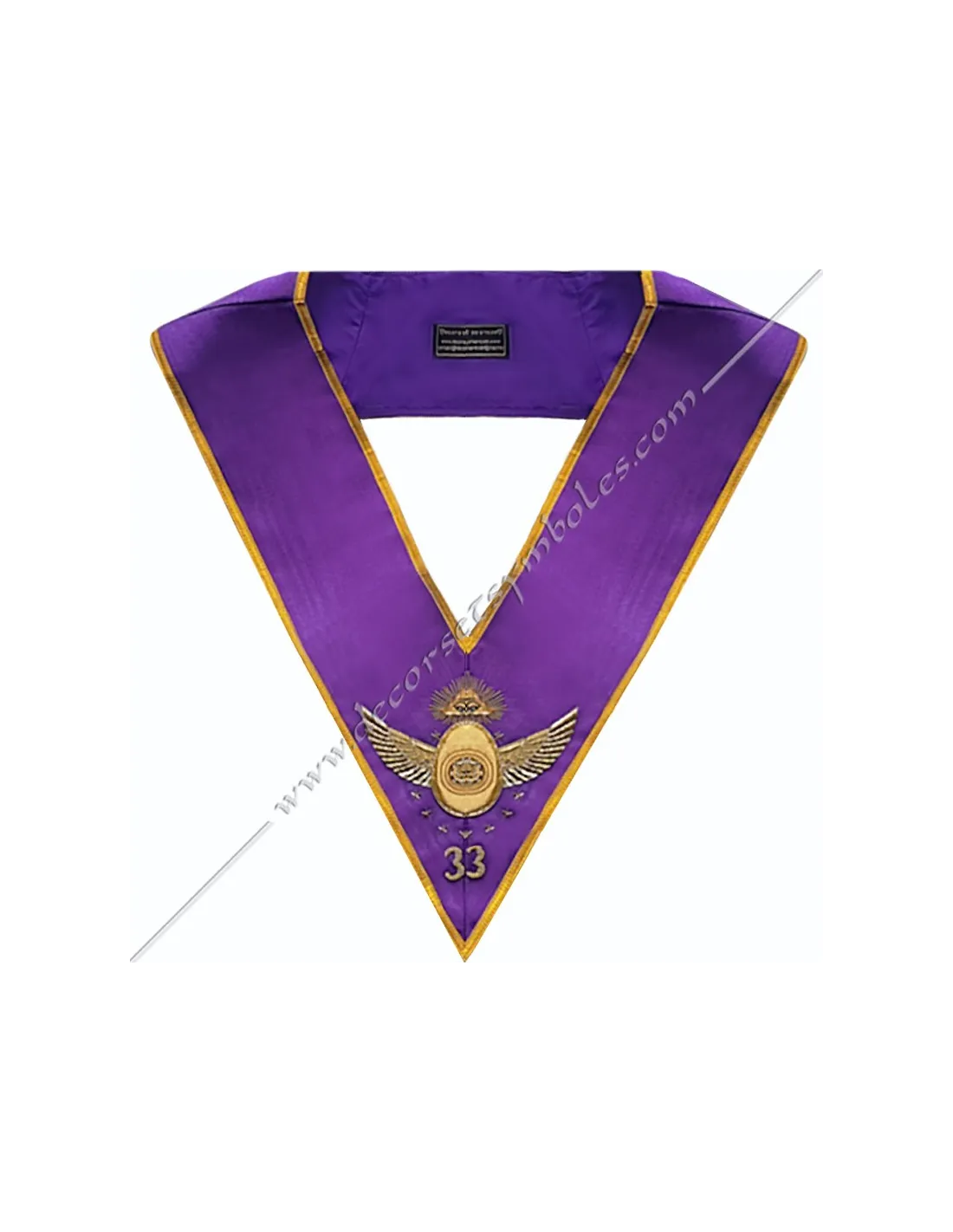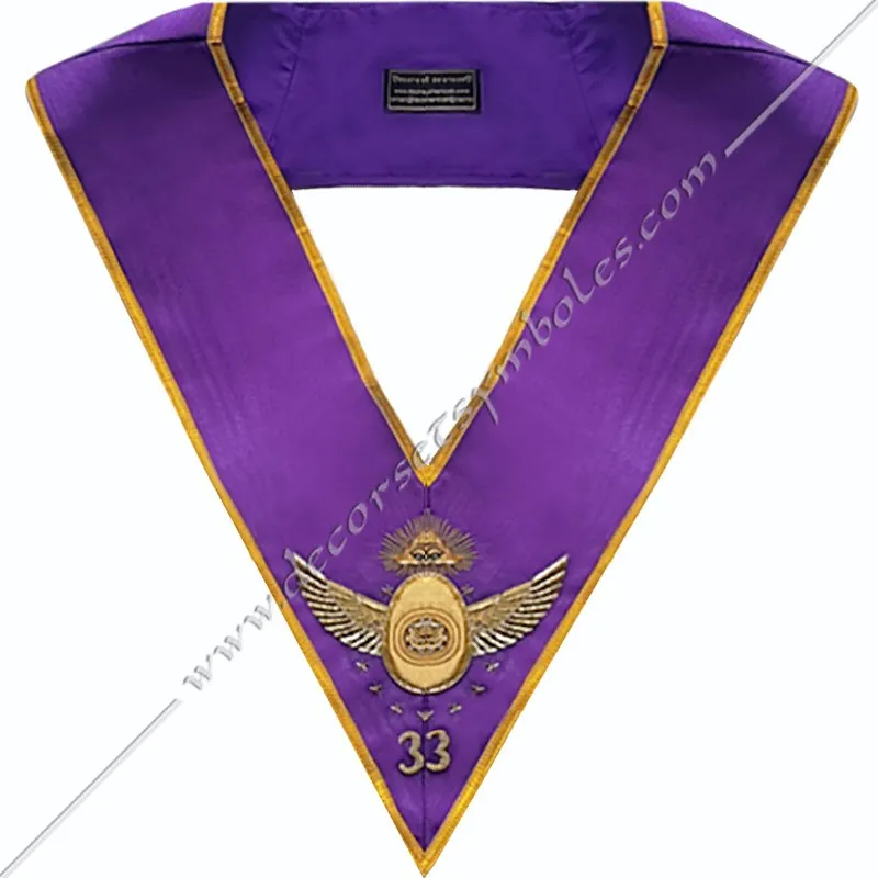 Sautoir maçonnique du 33ème degré en ruban moiré pourpre bordé Or