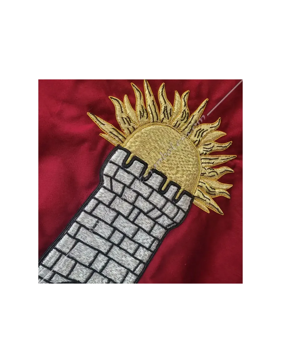 Hand-embroidered Masonic Lodge banner in crimson velvet