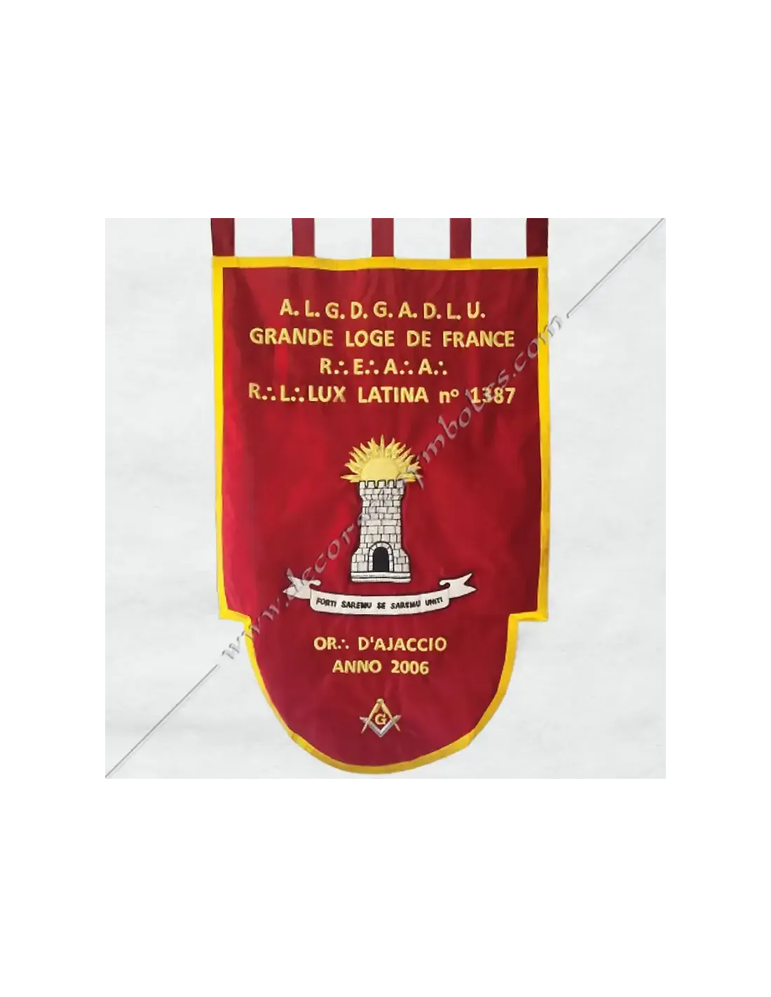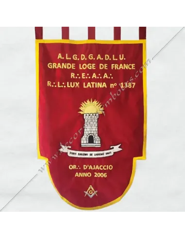 Lodge banner entirely hand-embroidered in gold and silk thread