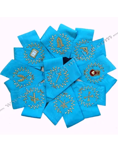 Masonic collars in turquoise blue moiré ribbon