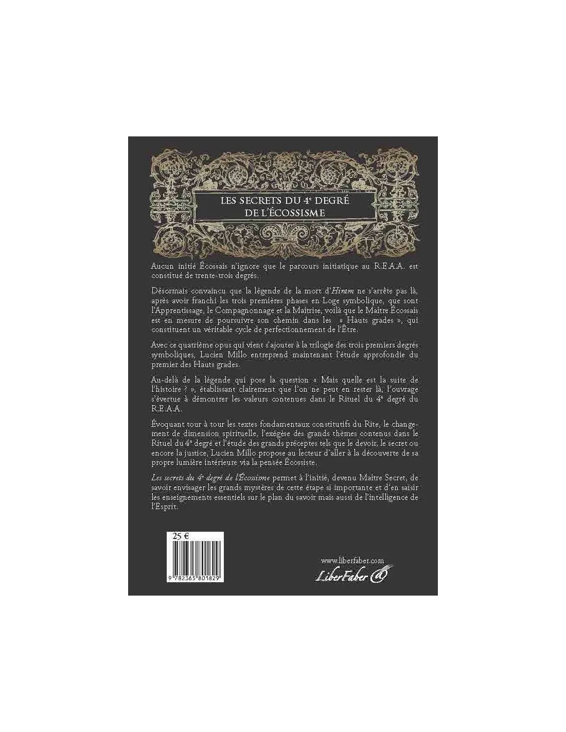 Les secrets du 4e degré de l’Écossisme permet à l’initié, devenu Maître Secret, de savoir envisager les grands mystères du quatrième degré du R.E.A.A. et d’en saisir les enseignements fondamentaux sur le plan du savoir mais aussi de l’intelligence de l’Esprit.