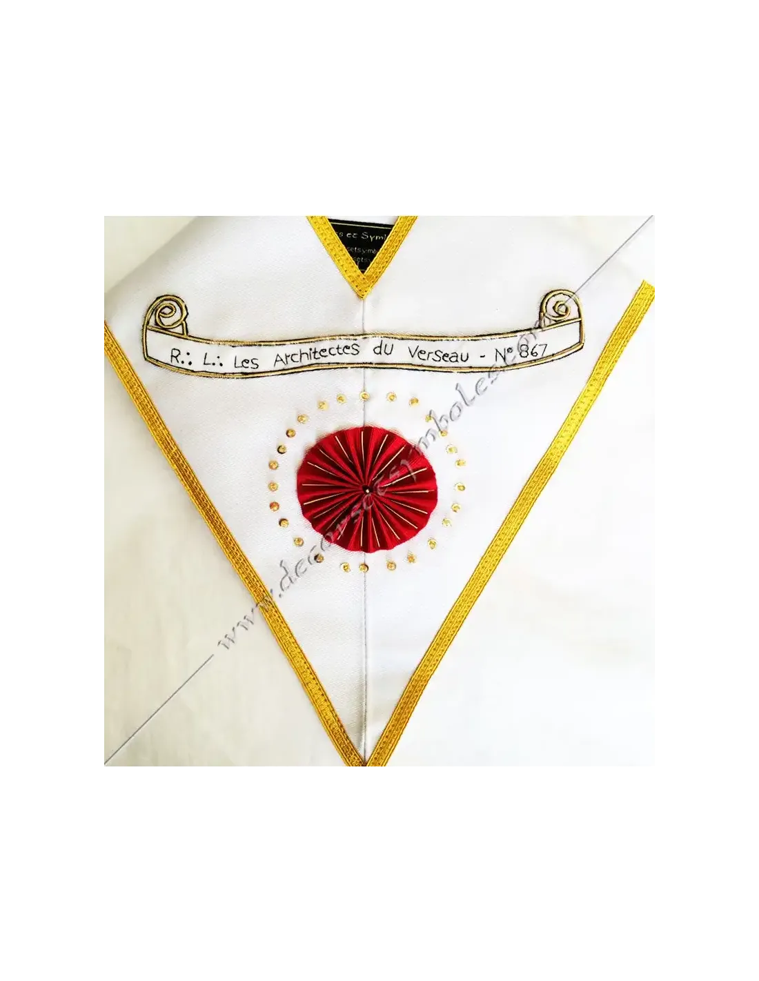 Gold-edged white moiré ribbon masonic collar for the Deputy Master of the AASR