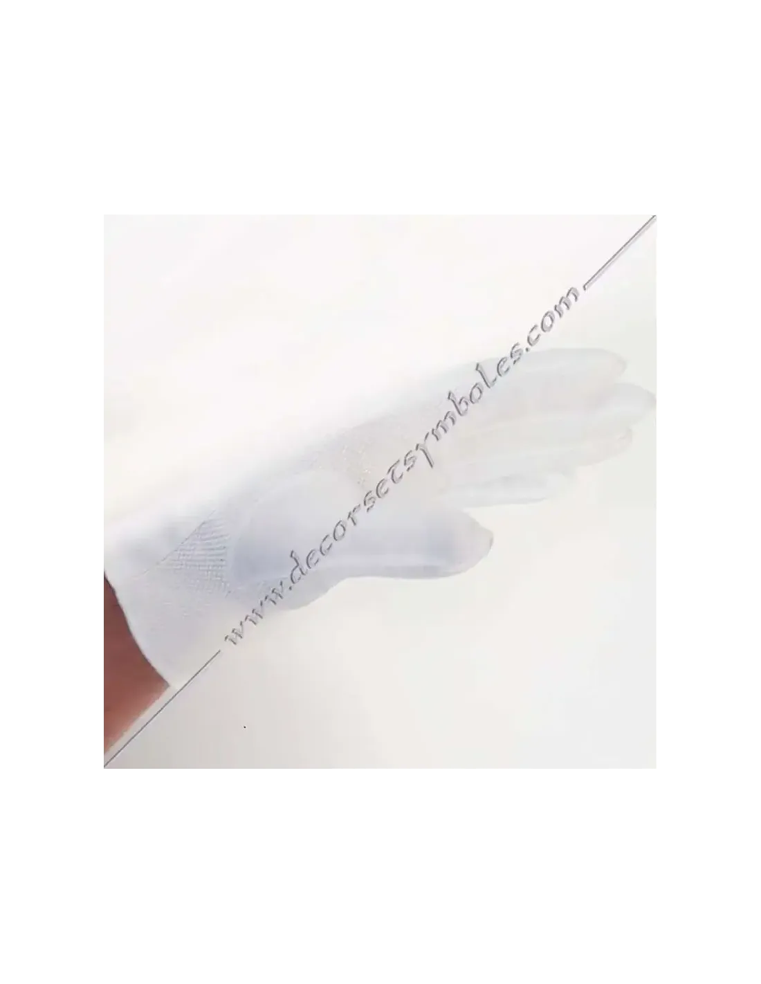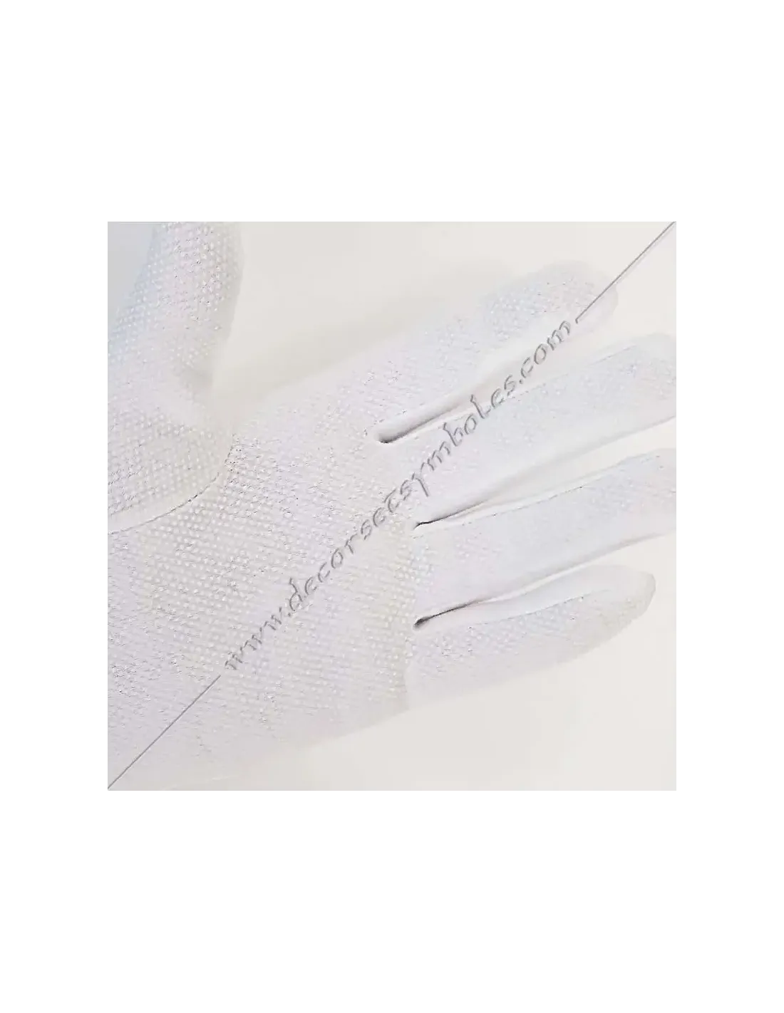 White Masonic gloves made of heavy cotton and Lycra with non-slip plastic rubber pins on the bottom of the hand