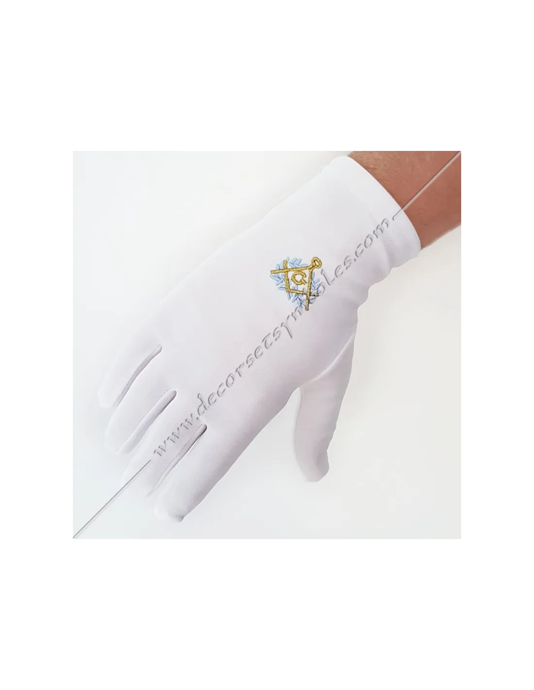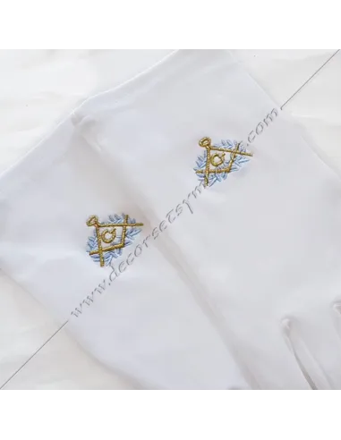 White masonic gloves embroidered in heavy cotton and high-quality Lycra