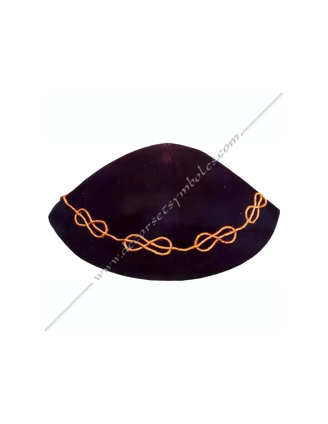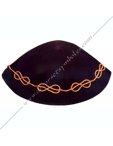 Masonic Kippa for Master in black satin fabric with gold braid embroidery lakes of love