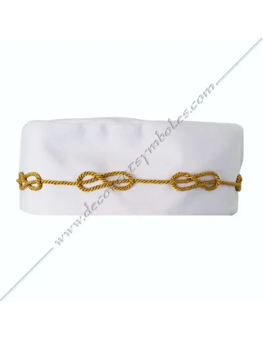 White Masonic Cap or headdress for Martinism or the Operative Rite of Solomon in white satin fabric with gold braid embroidery lakes of love