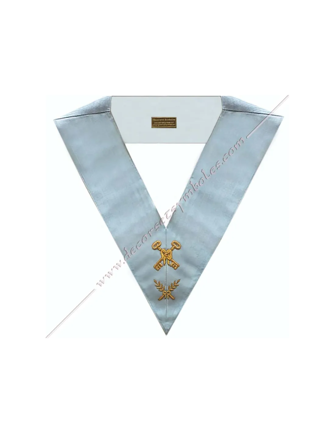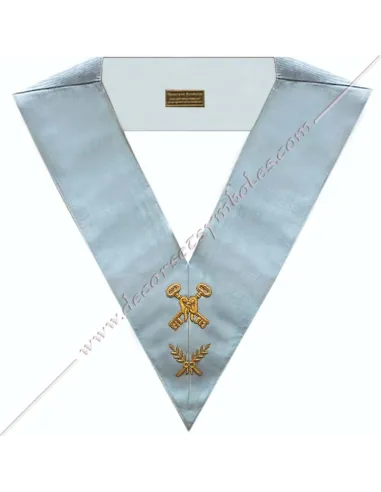 Masonic collar or sash for officer treasurer of the French Modern Rite in sky blue moiré ribbon