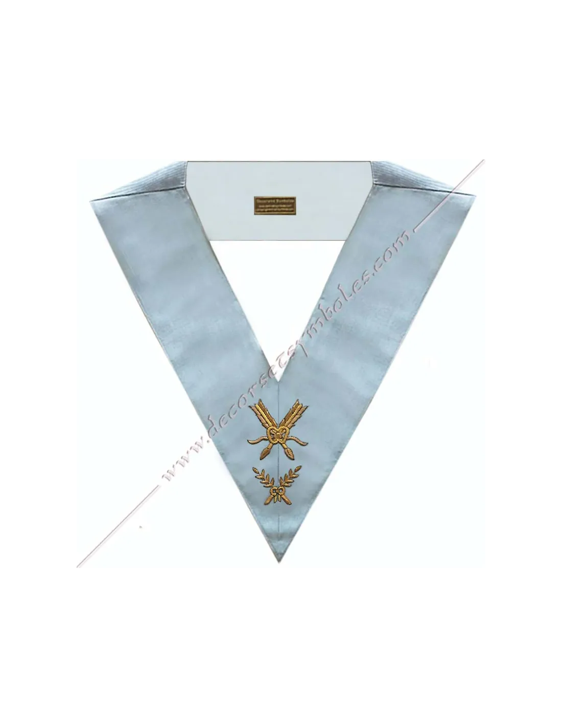 Masonic collar or sash for a secretary officer of the Rite Français Moderne in sky blue moiré ribbon