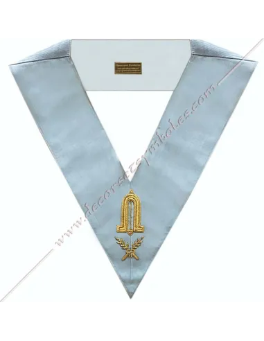 Masonic Second Guard collar or sash, officer of the French Moderne Rite in sky blue moiré ribbon