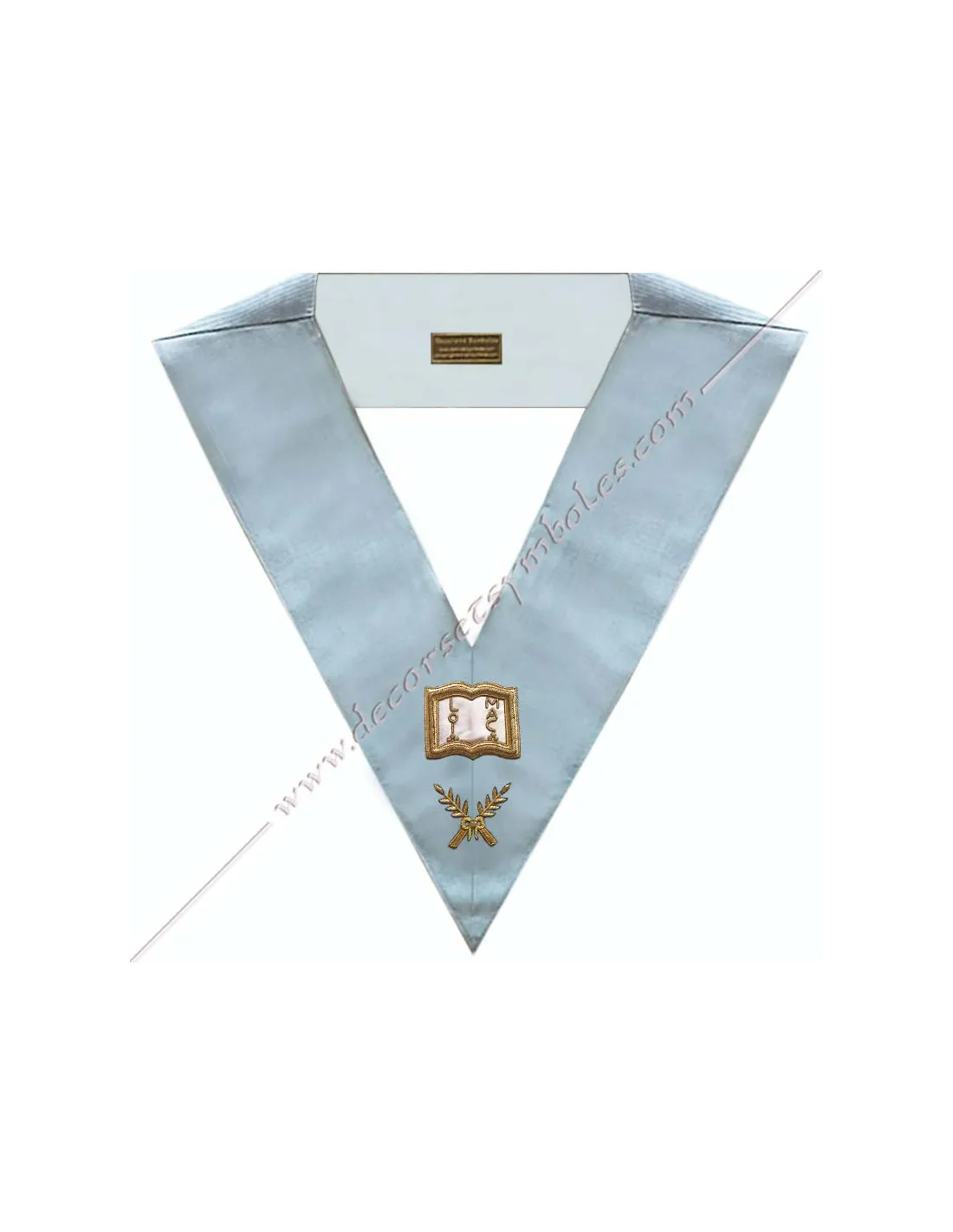 Light blue moiré ribbon masonic officer orator colalr or sash of the Modern French Rite
