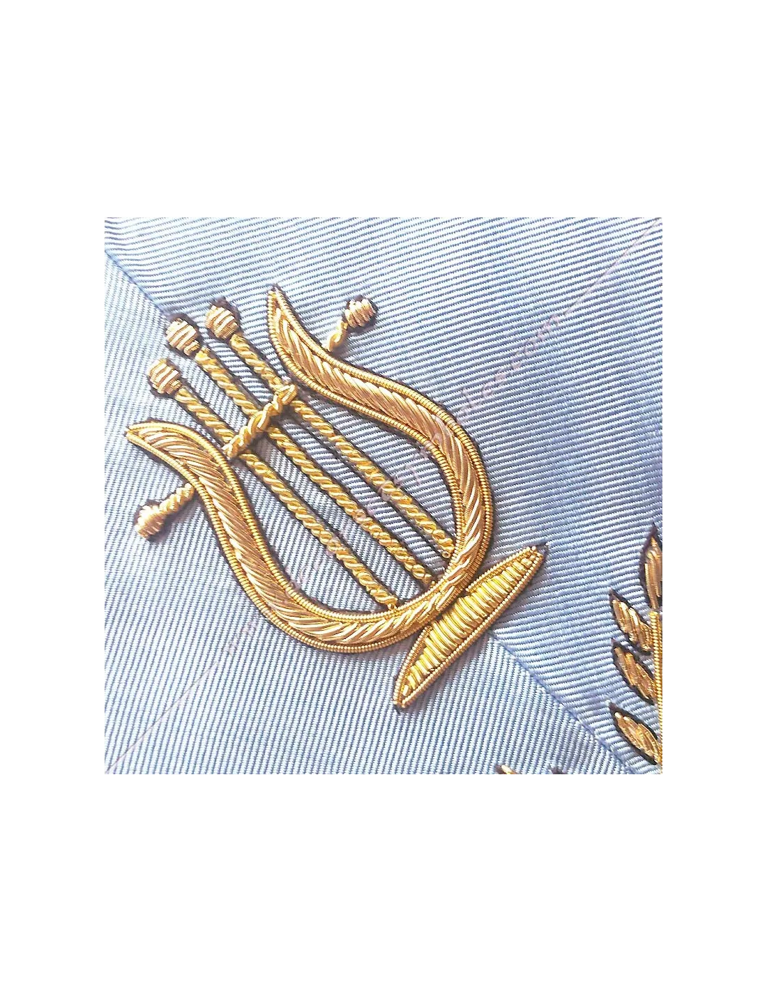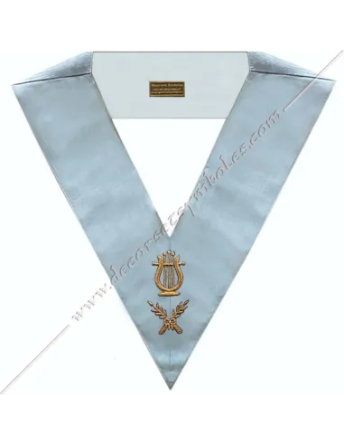 Masonic collar or sash for a master of music or harmony officer of the French Modern Rite in light blue moiré ribbon