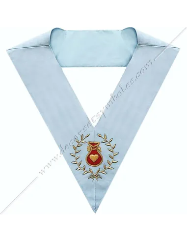 Masonic collar or sash for officer chaplain of the French Modern Rite in sky blue moiré ribbon