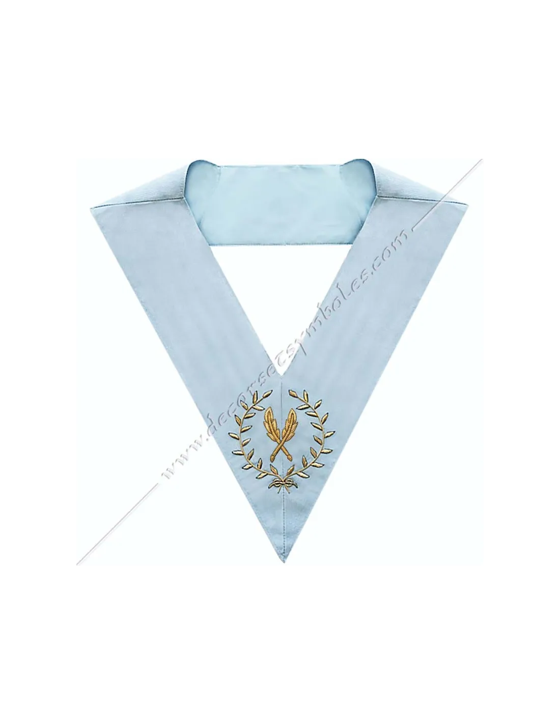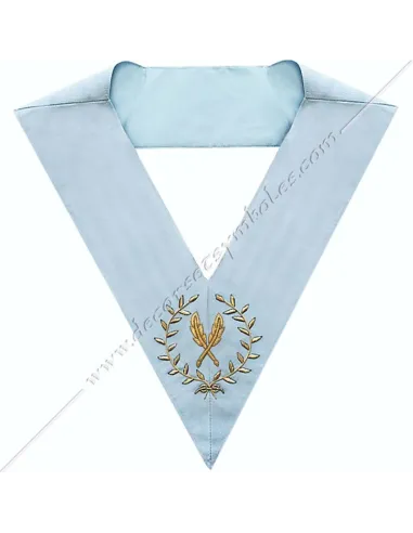 Masonic collar or sash for officer secretary of the French Modern Rite in sky blue moiré ribbon
