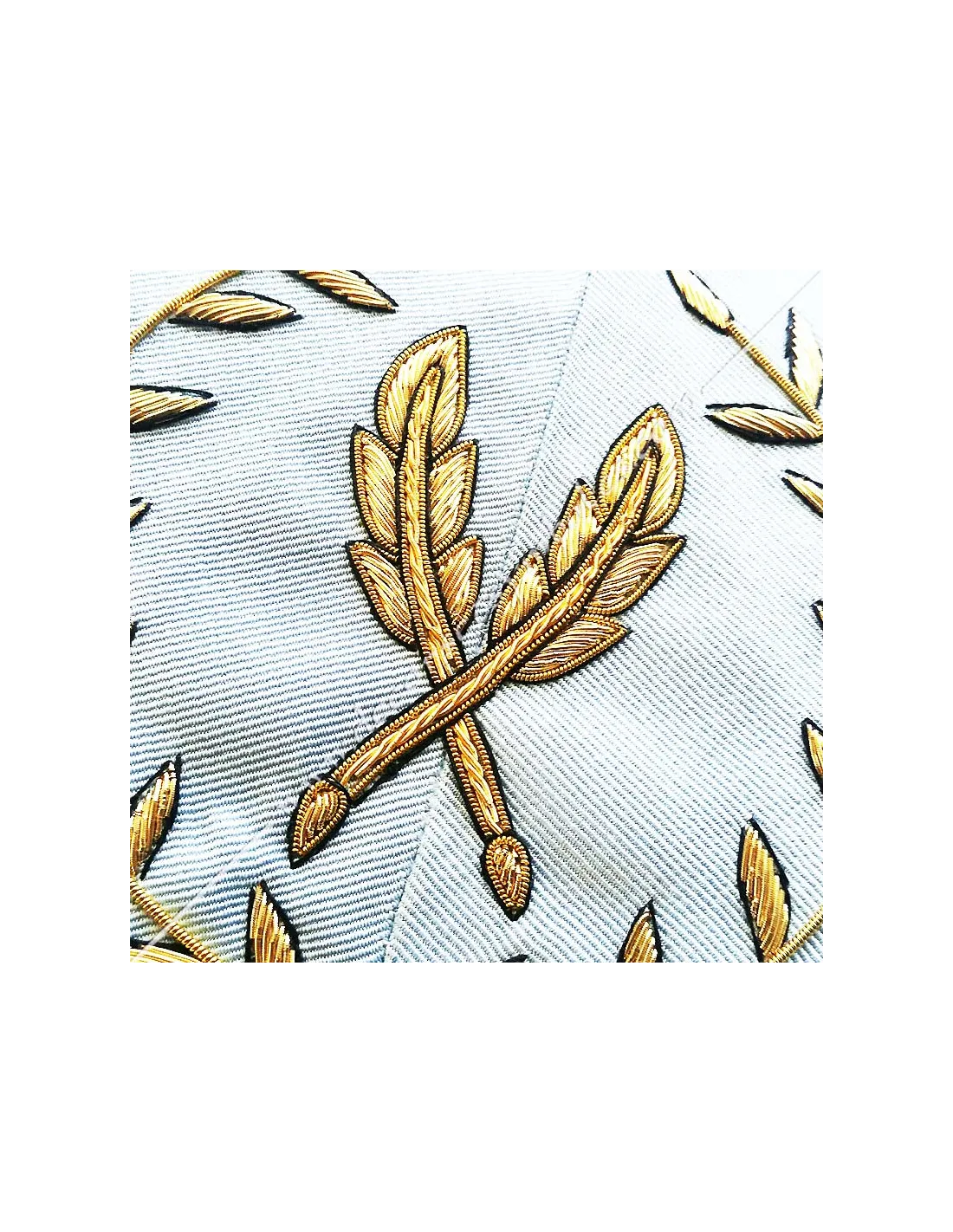 Embroidery: 2 crossed feathers in an acacia crown