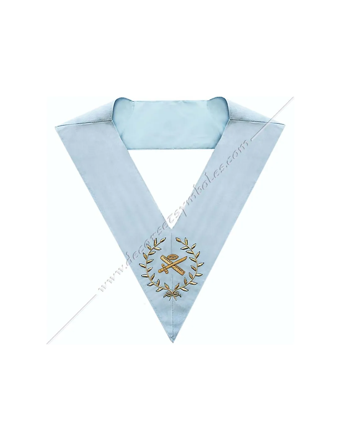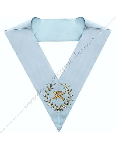 Masonic collar or sash for officer frère terrible or expert of the French Modern Rite in sky blue moiré ribbon
