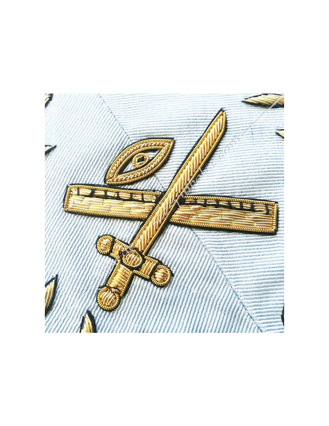 Embroidery: eye on a sword and crossed cane in an acacia crown