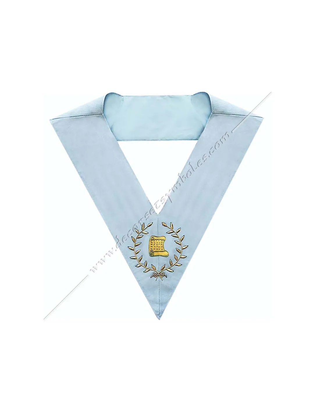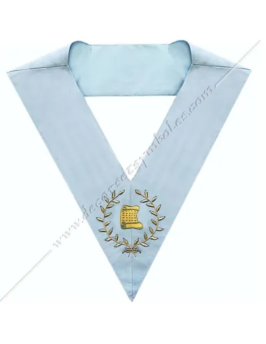 Masonic collar or sash for officer architect of the French Modern Rite in sky blue moiré ribbon