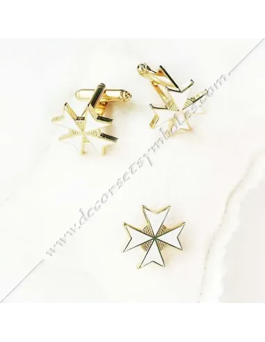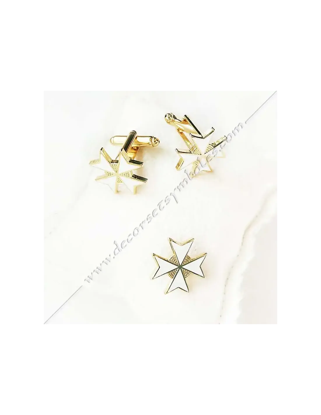 Masonic ornaments, cufflinks and Maltese Cross pins, cut out and gilded in fine gold