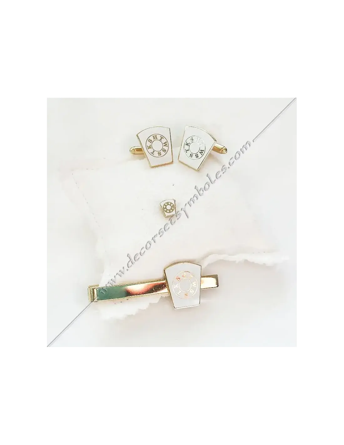 La Marque WSSSHT Masonic set (tie pin, cufflinks and pins) in stainless steel, gilded with fine gold