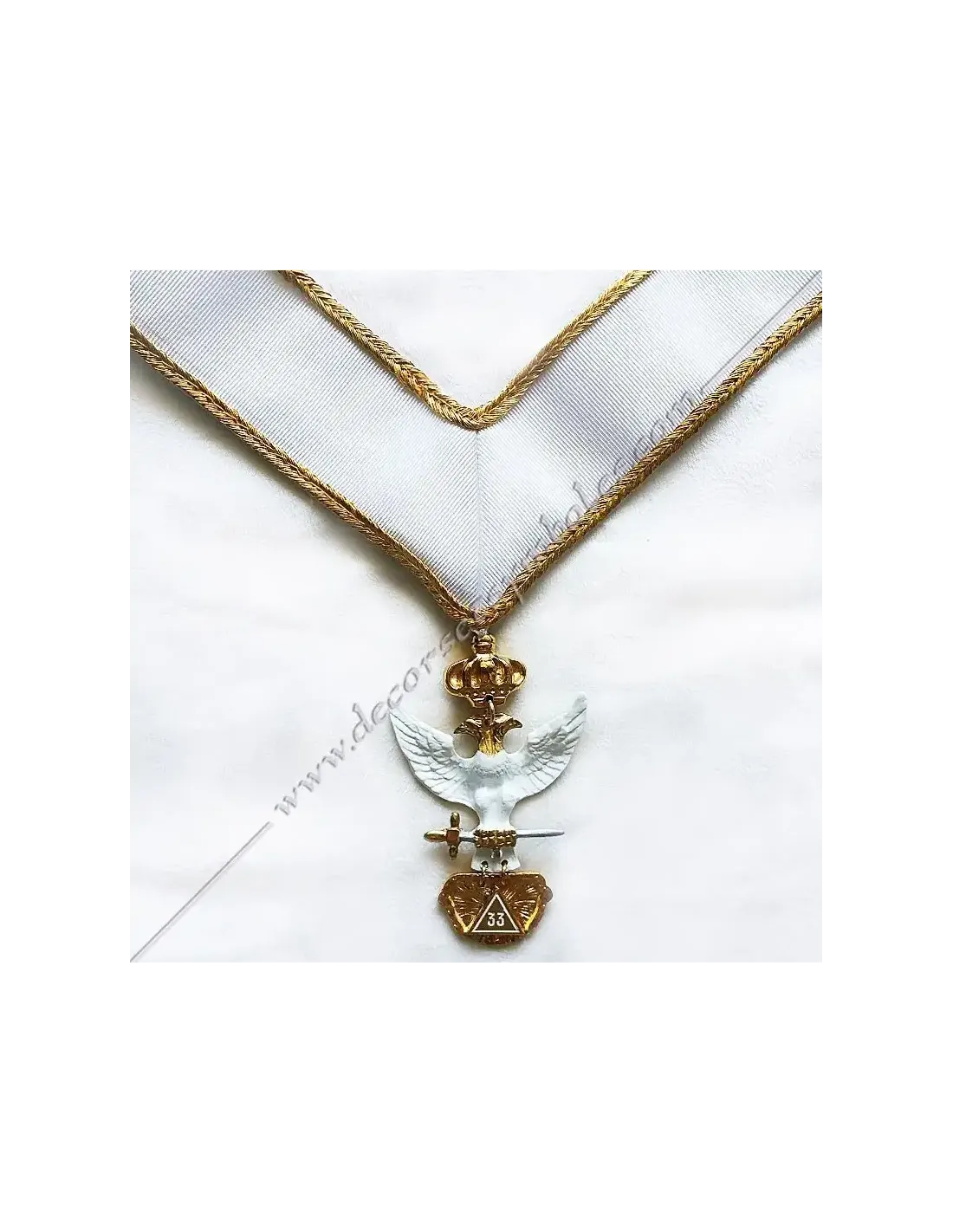 Collar or ribbon in white moiré ribbon for the 31st and 33rd degrees of the AASR