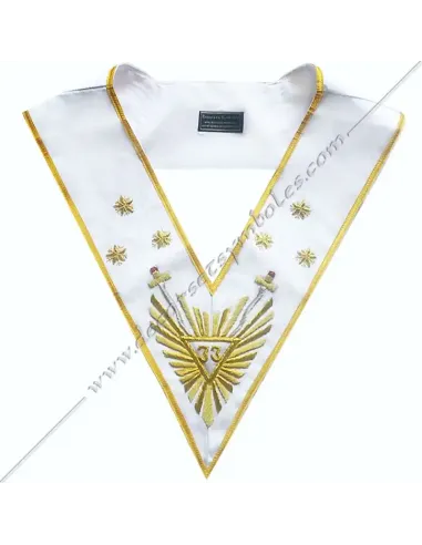 Sovereign Grand Inspector of the 33rd degree of the REAA in white moiré ribbon edged in gold.