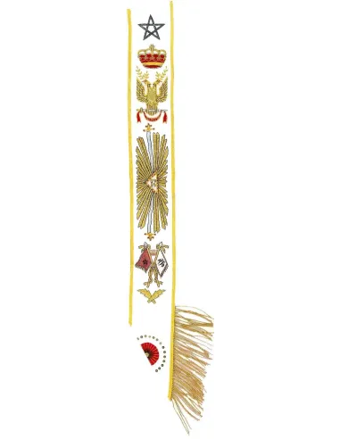 Masonic lanyard or scarf of Sovereign Grand Inspector of the 33rd degree of the REAA in white moiré ribbon edged in gold