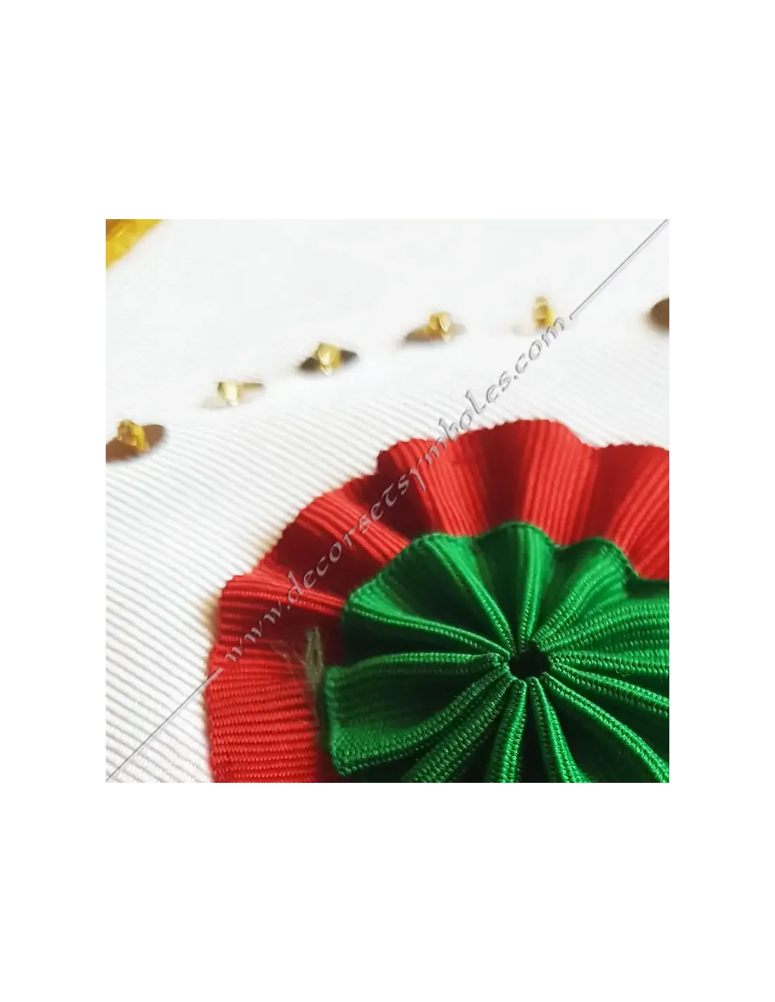 Red and green roundel with gold fringes