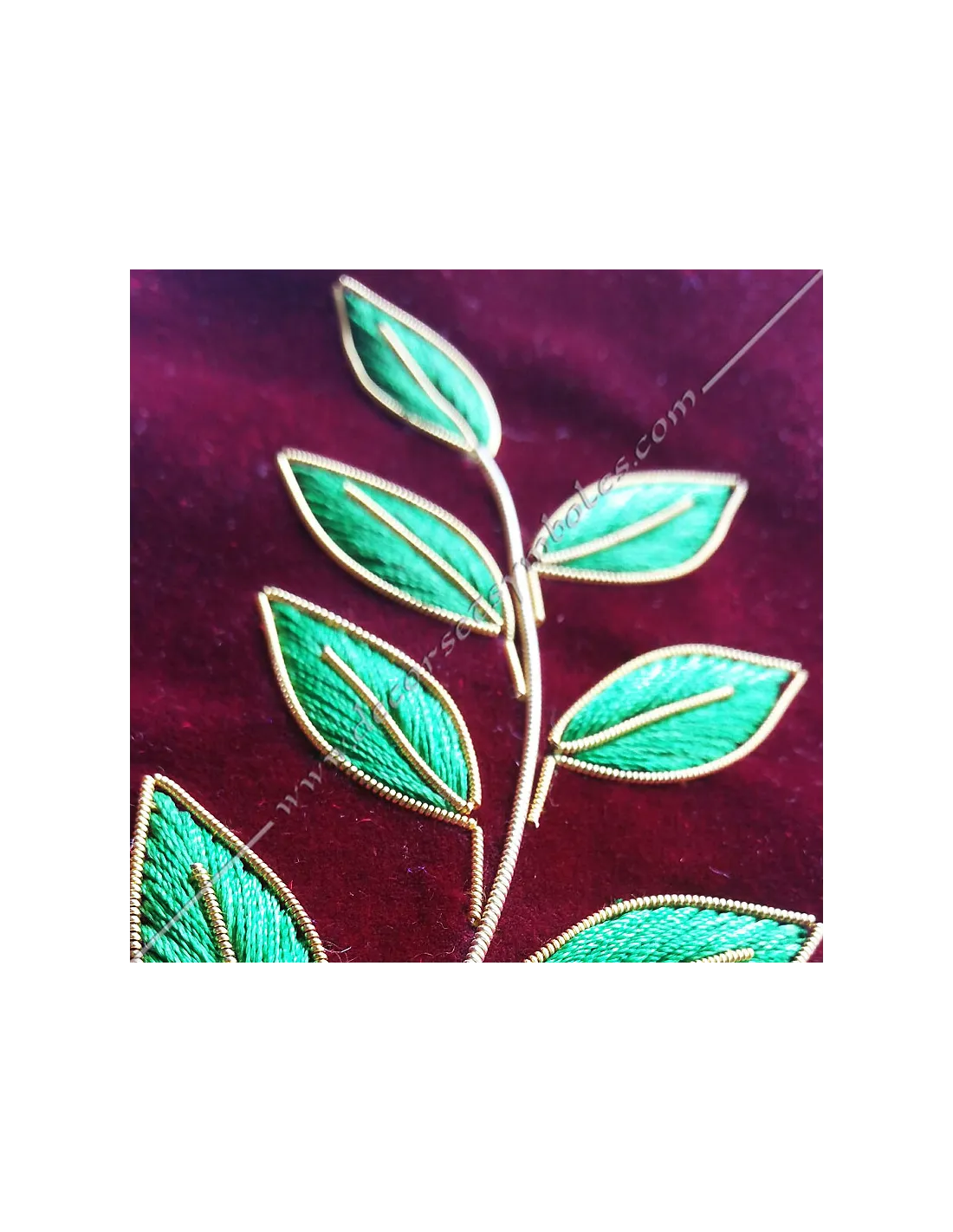 Embroideries: large acacia branch and gold star