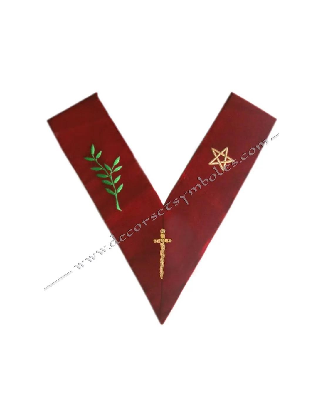 Sautoir maçonnique de Couvreur du 14e degré en ruban velours "cramoisi"