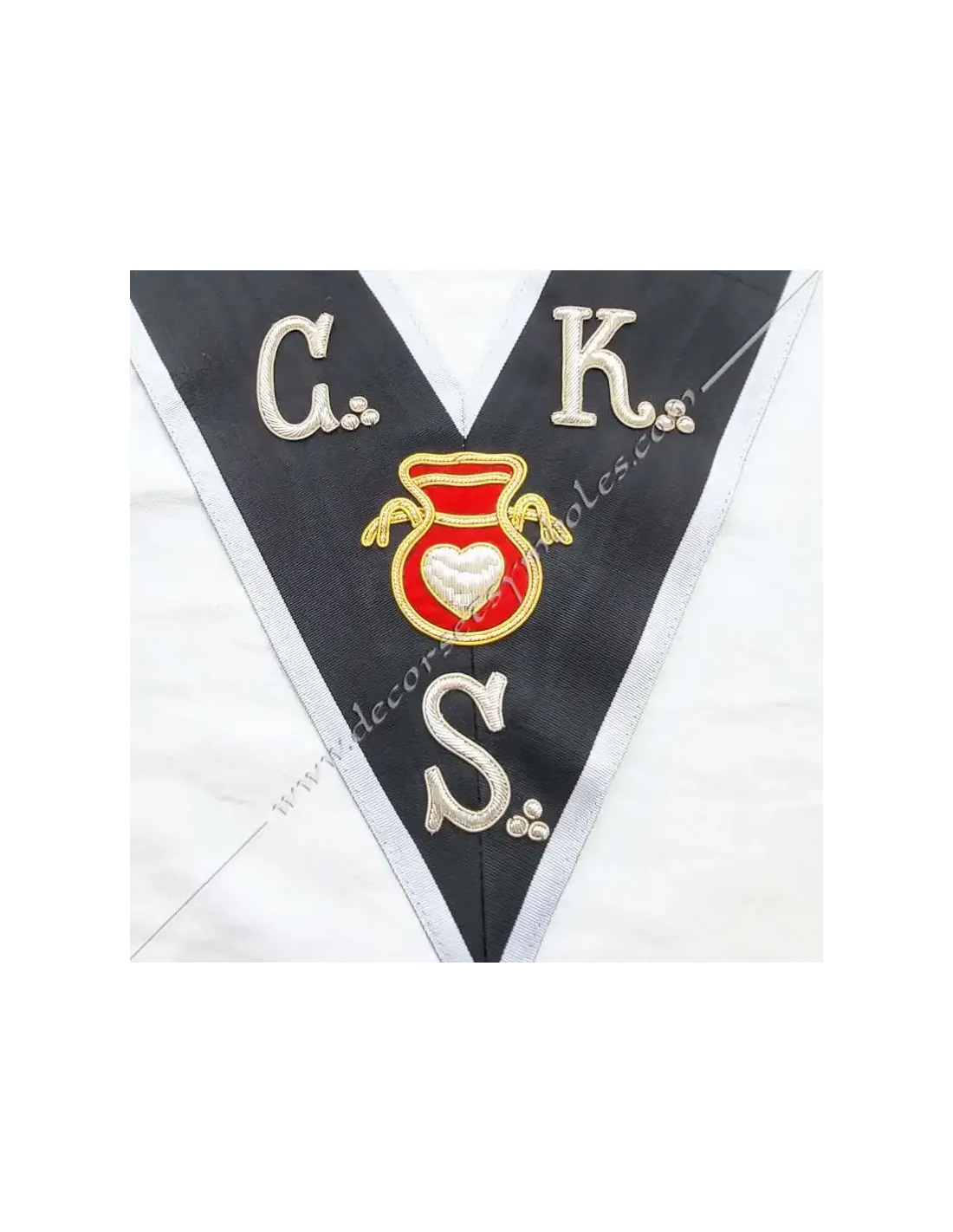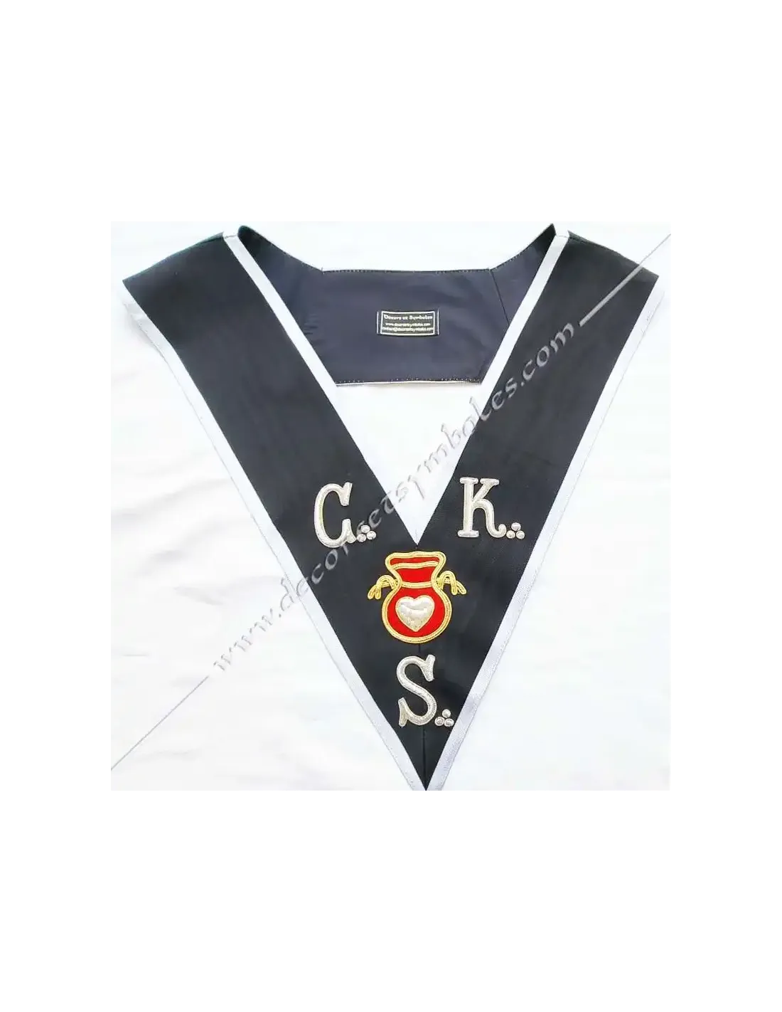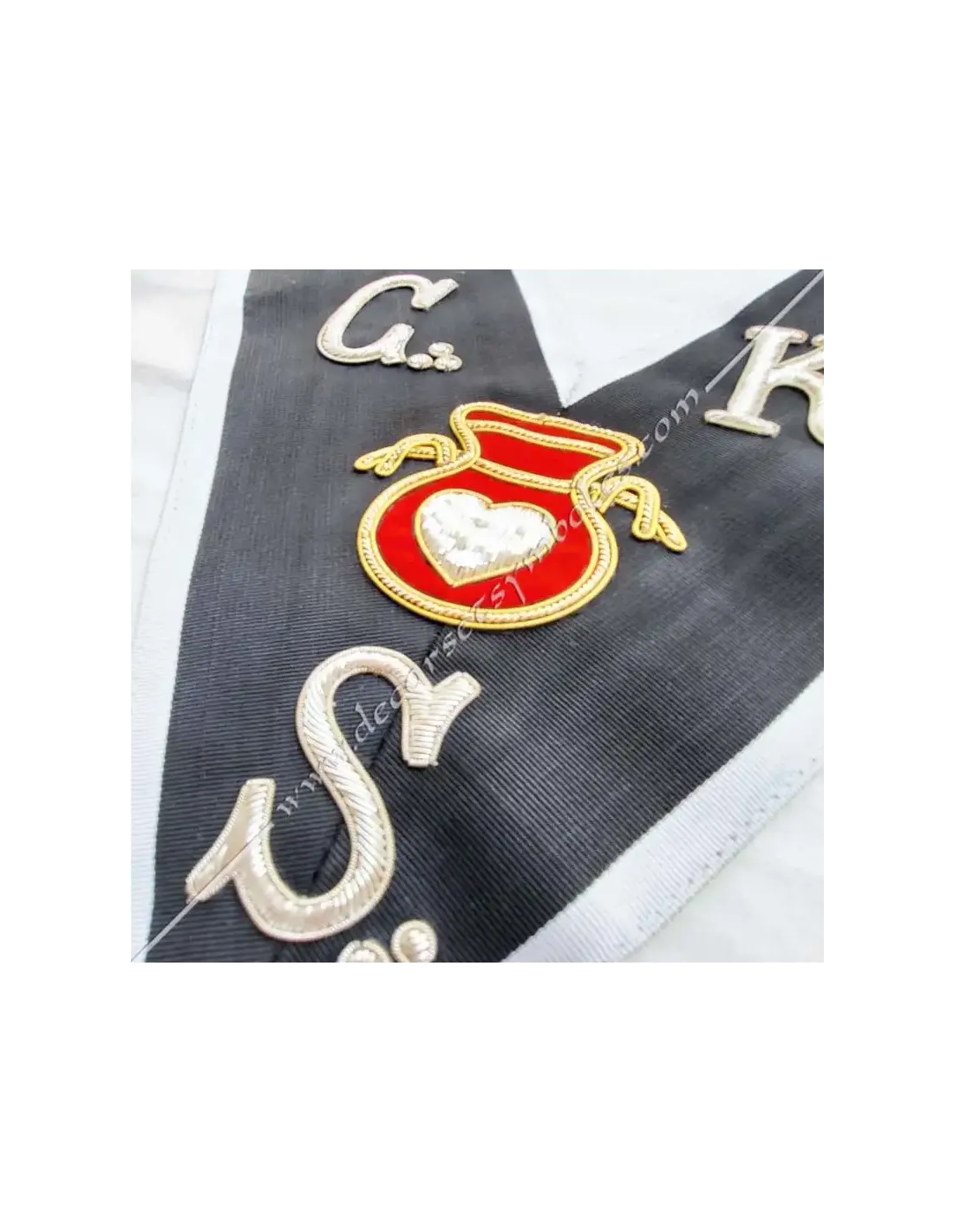 Great Hospitaller Knight Kadosch 30th degree AASR Masonic collar or sash in black moiré ribbon with white border 0.5 cm