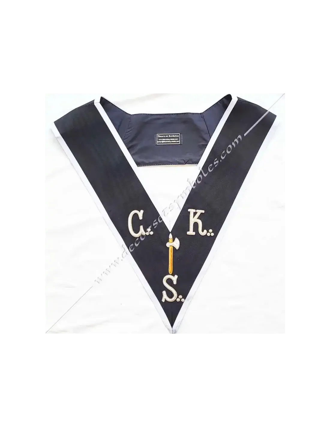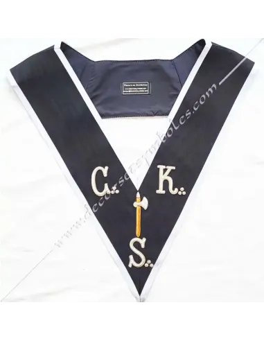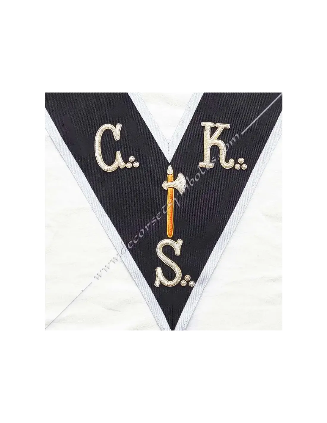 Grand Introducer Knight Kadosch CKS Masonic collar or sash in black moiré ribbon with white border 0.5 cm