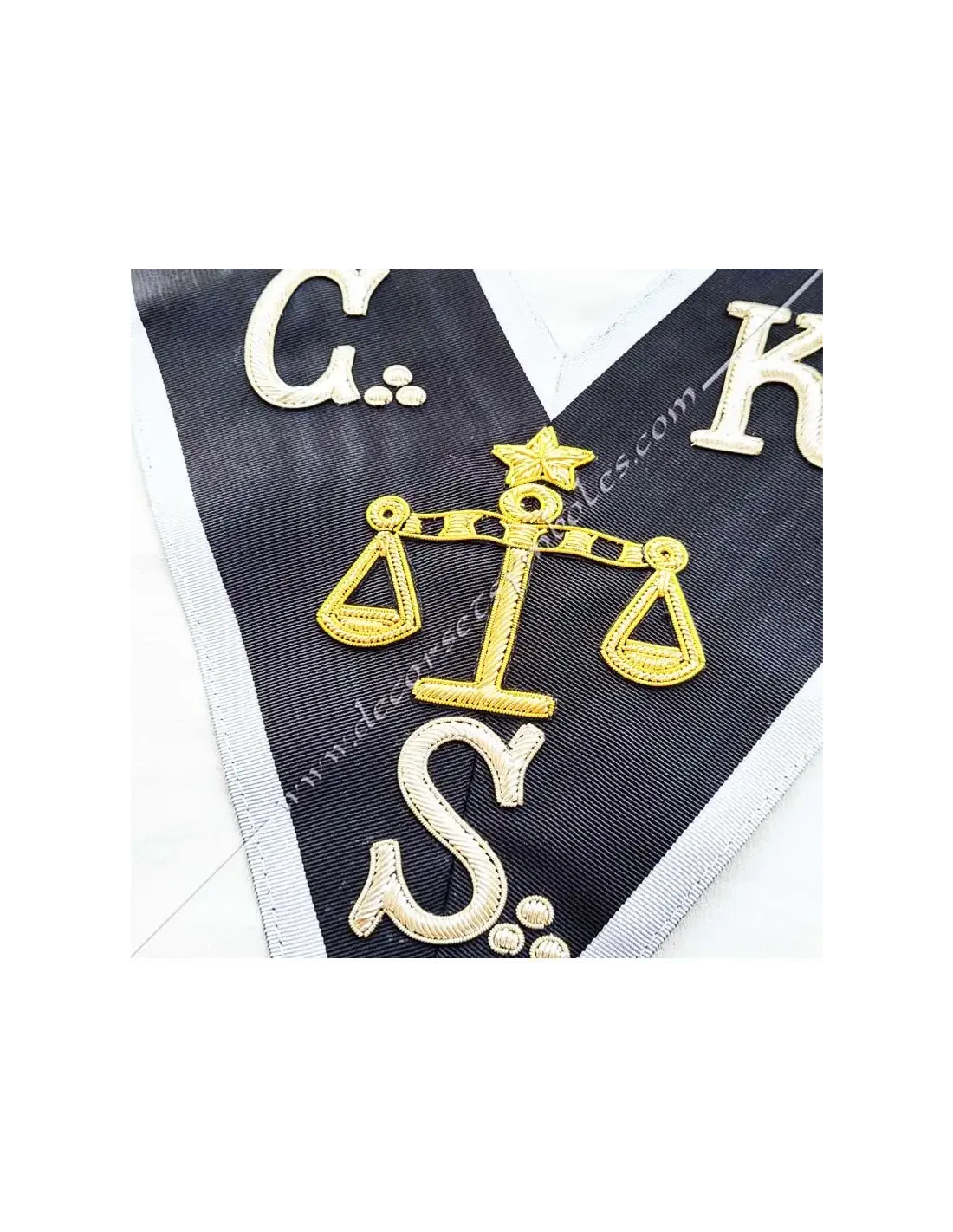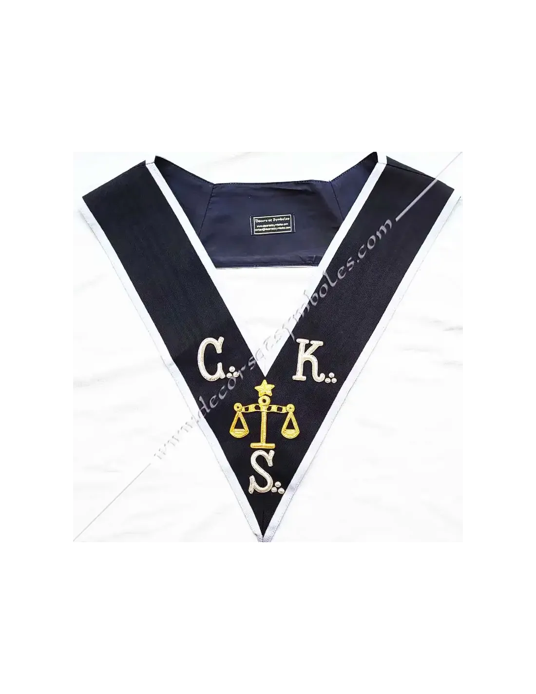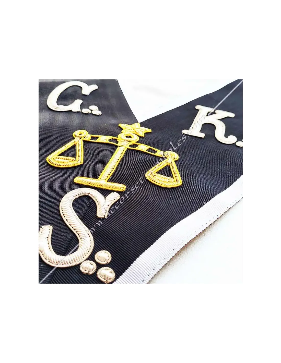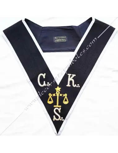 1st Grand Judge Knight Kadosch CKS Masonic lanyard or necklace in black moiré ribbon with white border 0.5 cm