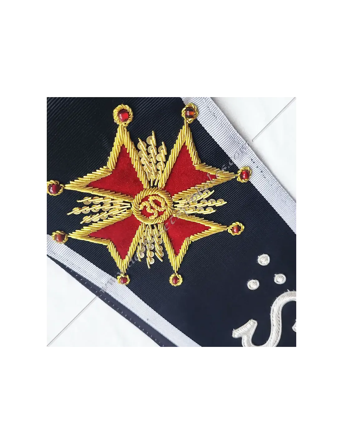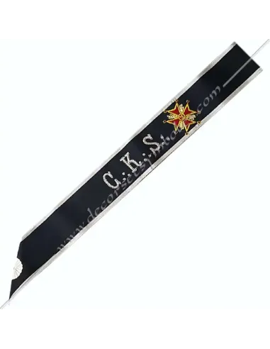 CKS Masonic cord or harness for Kadosch Knights of the 30th degree of the AASR in black moiré ribbon with white border 0.5 cm