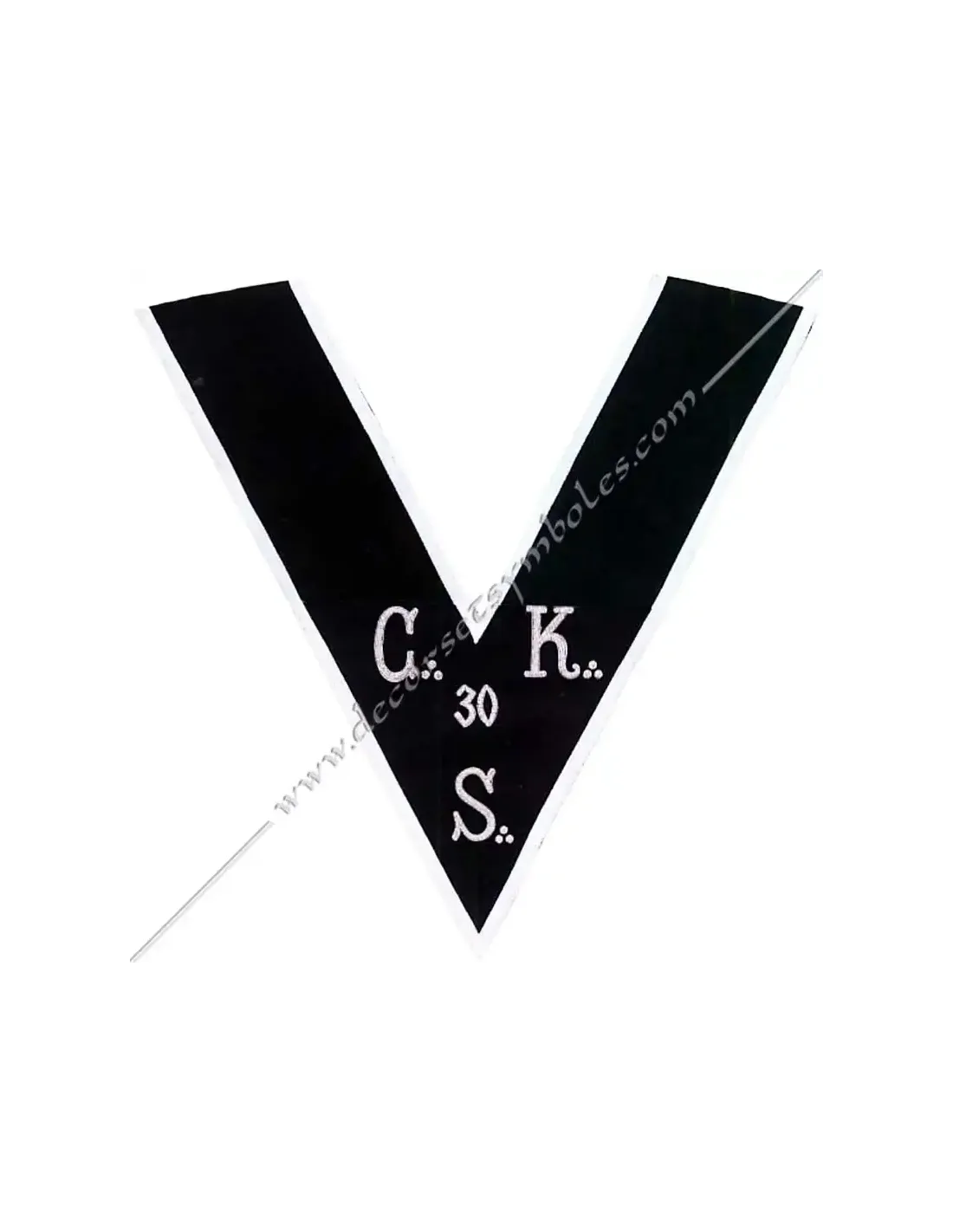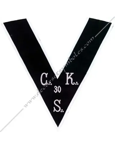 C.K.S. Masonic collar or sash for Kadosch Knights of the 30th degree of the AASR in black moiré ribbon with white border 0.5 cm