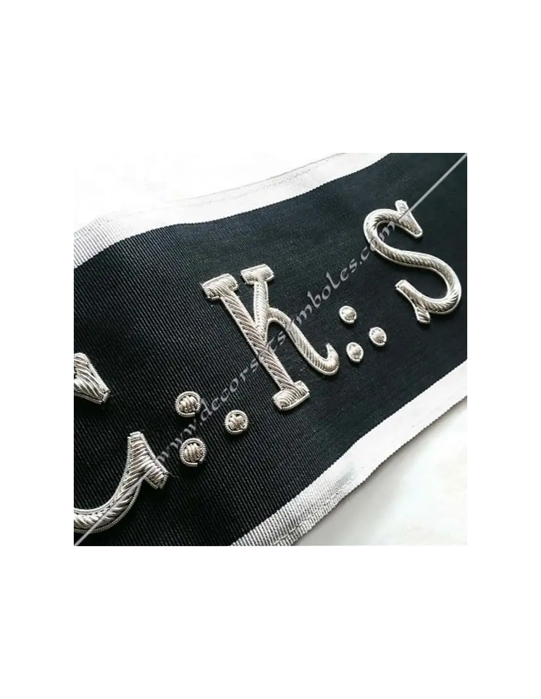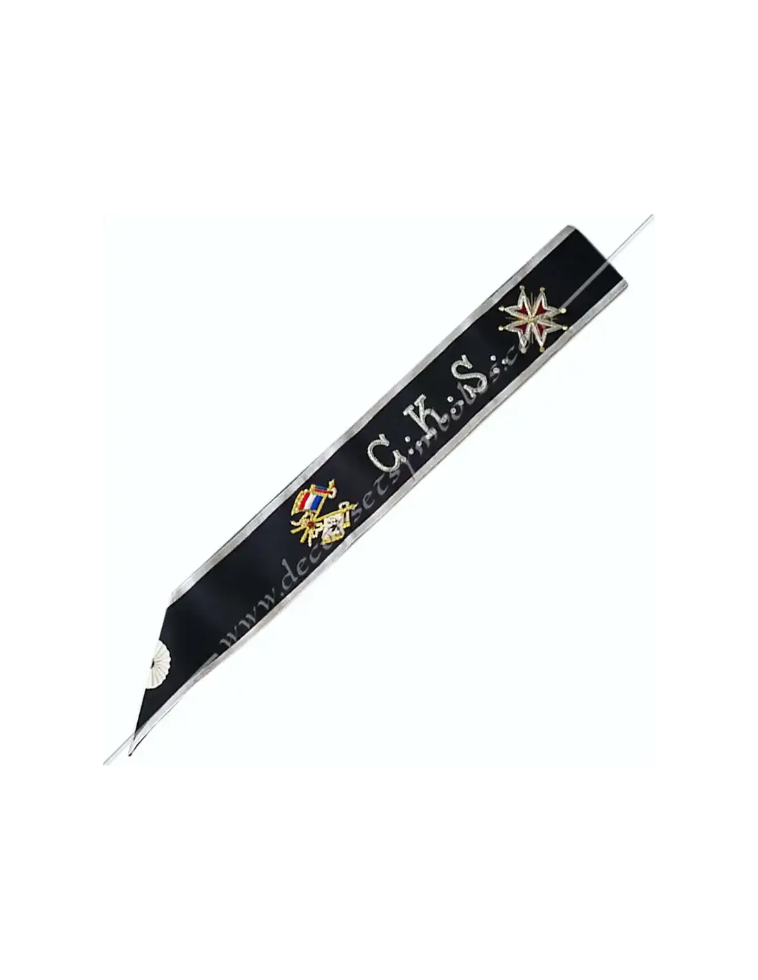 CKS Masonic cord or harness for Kadosch Knights of the 30th degree of the AASR in black moiré ribbon with white border 0.5 cm