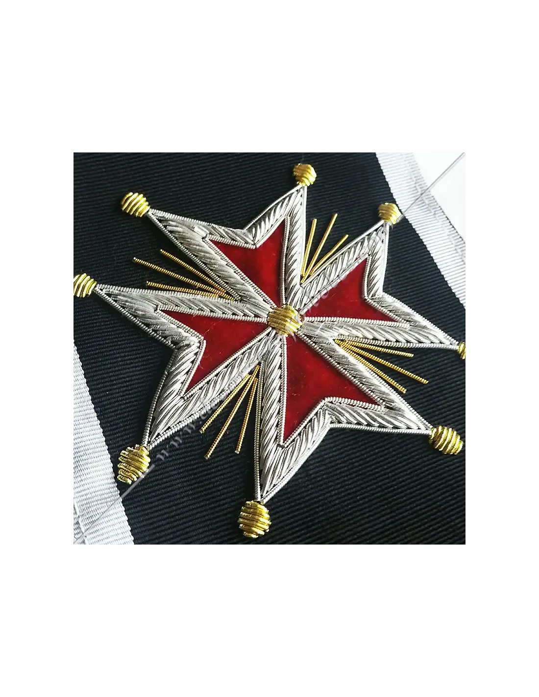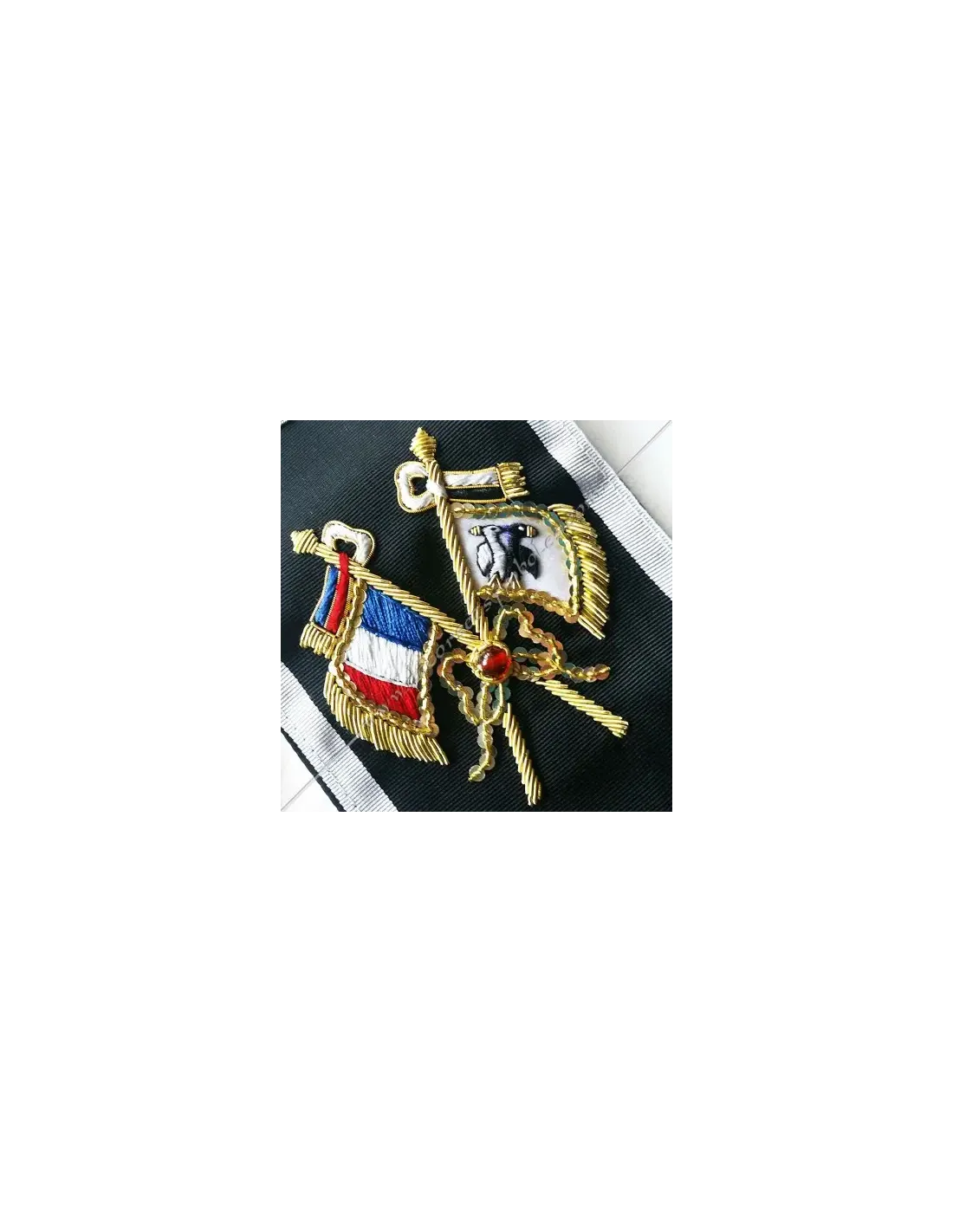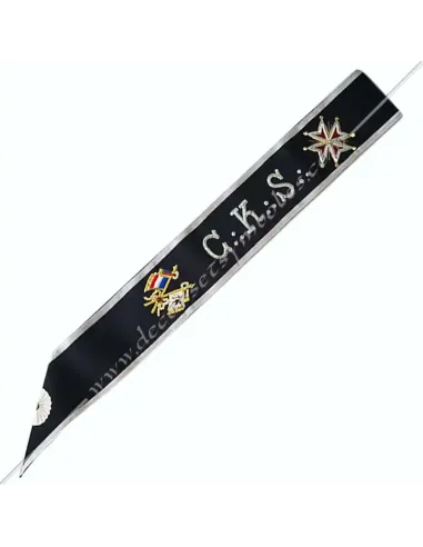 CKH Masonic sash or harness for Kadosch Knights of the 30th degree of the AASR in black moiré ribbon with white border 0.5 cm