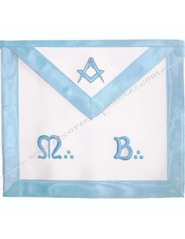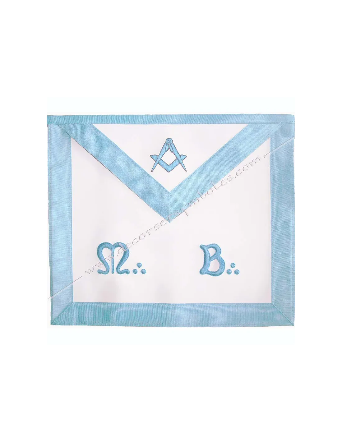 Master Masonic apron of the French Modern Rite in imitation leather edged in sky blue