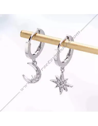 Silver-plated stainless steel asymmetrical moon and sun masonic earrings