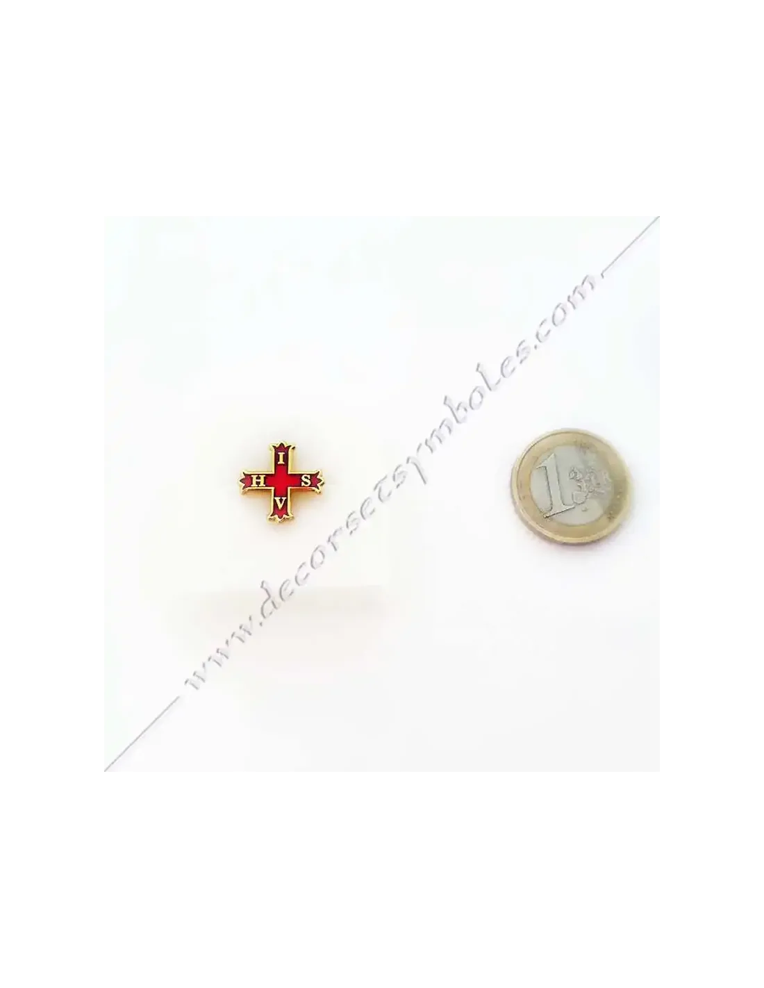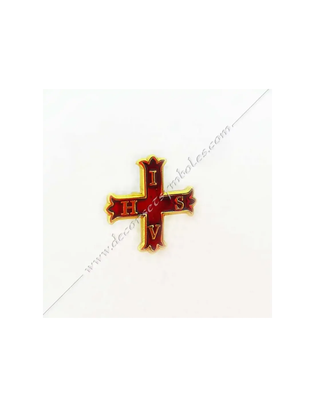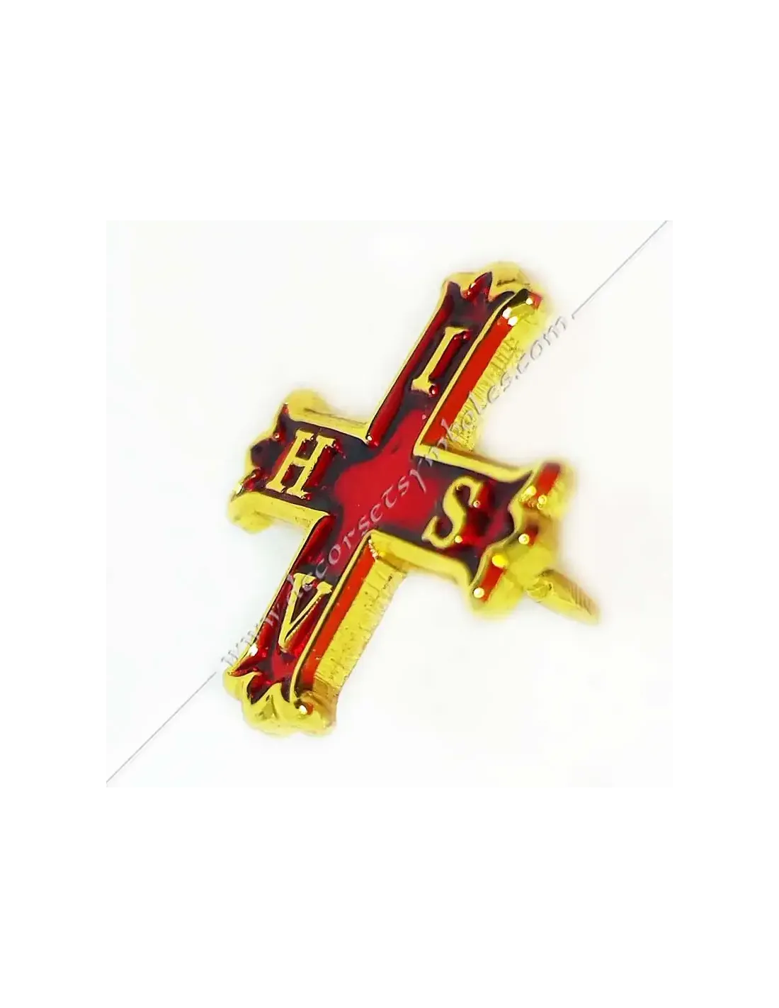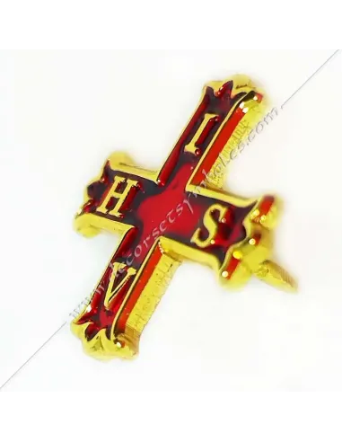 Gold-plated and red-enamelled IVHS Cross Masonic pin for CBCS