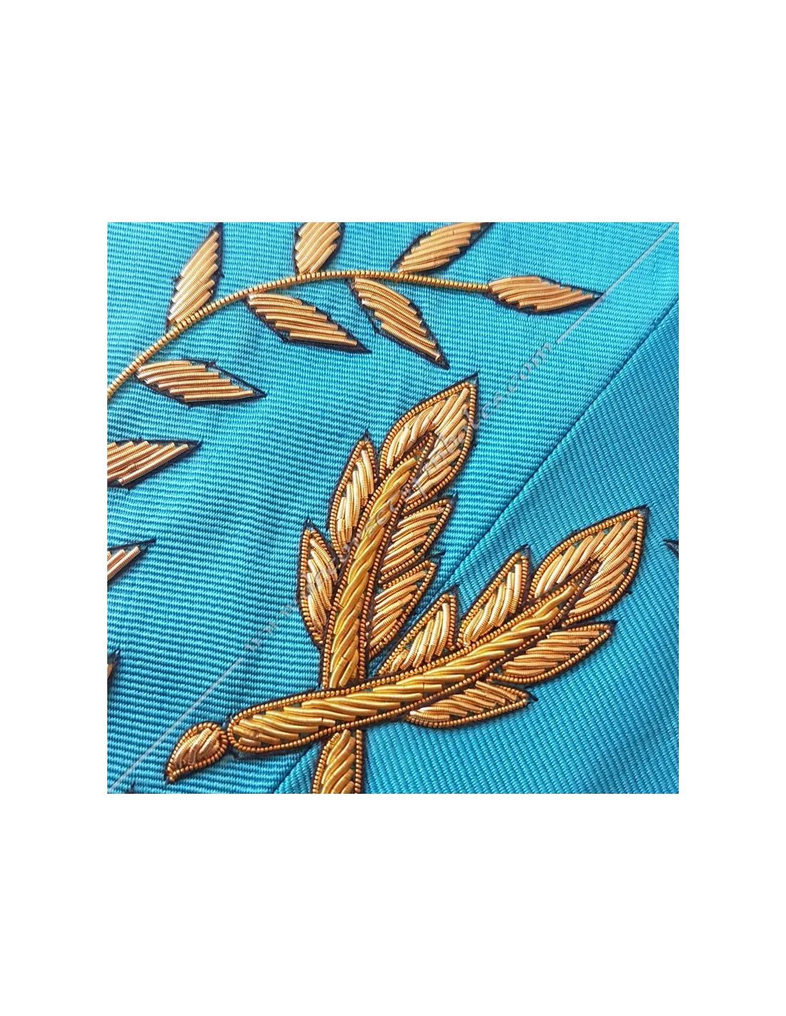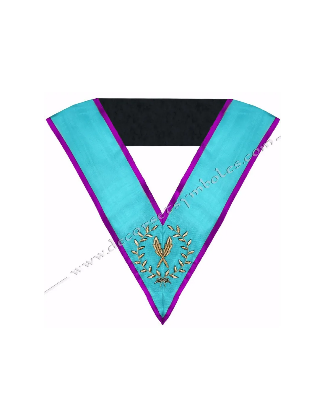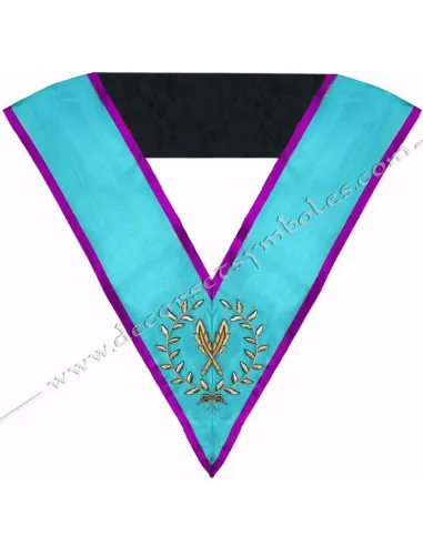 Masonic collar for the Secretary of Memphis Misraim in turquoise moired ribbon with purple edging