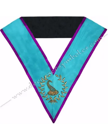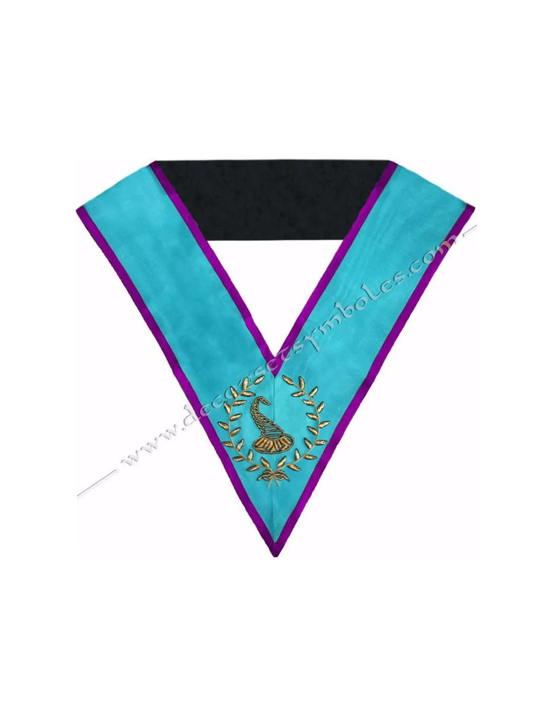 Masonic collar for the Banquets Master of Memphis Misraim in turquoise moired ribbon with purple edging