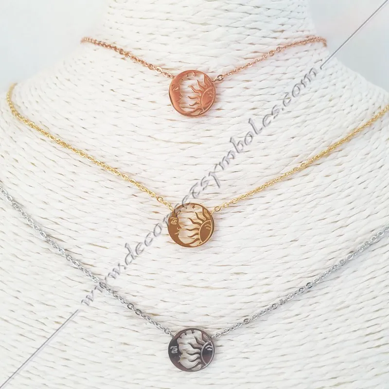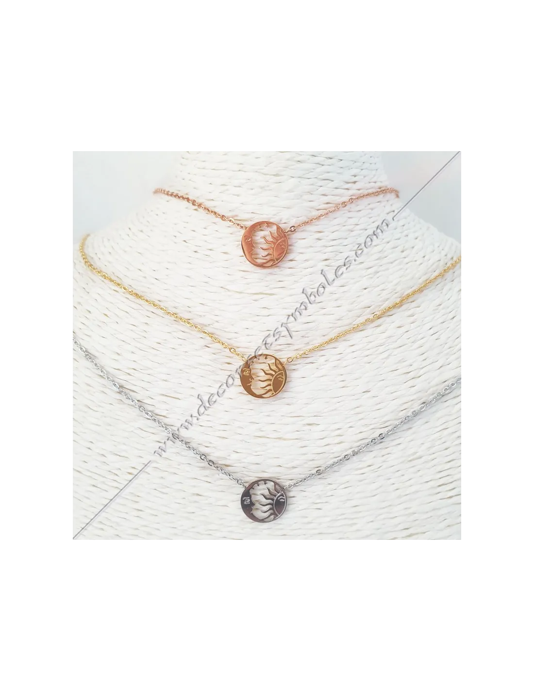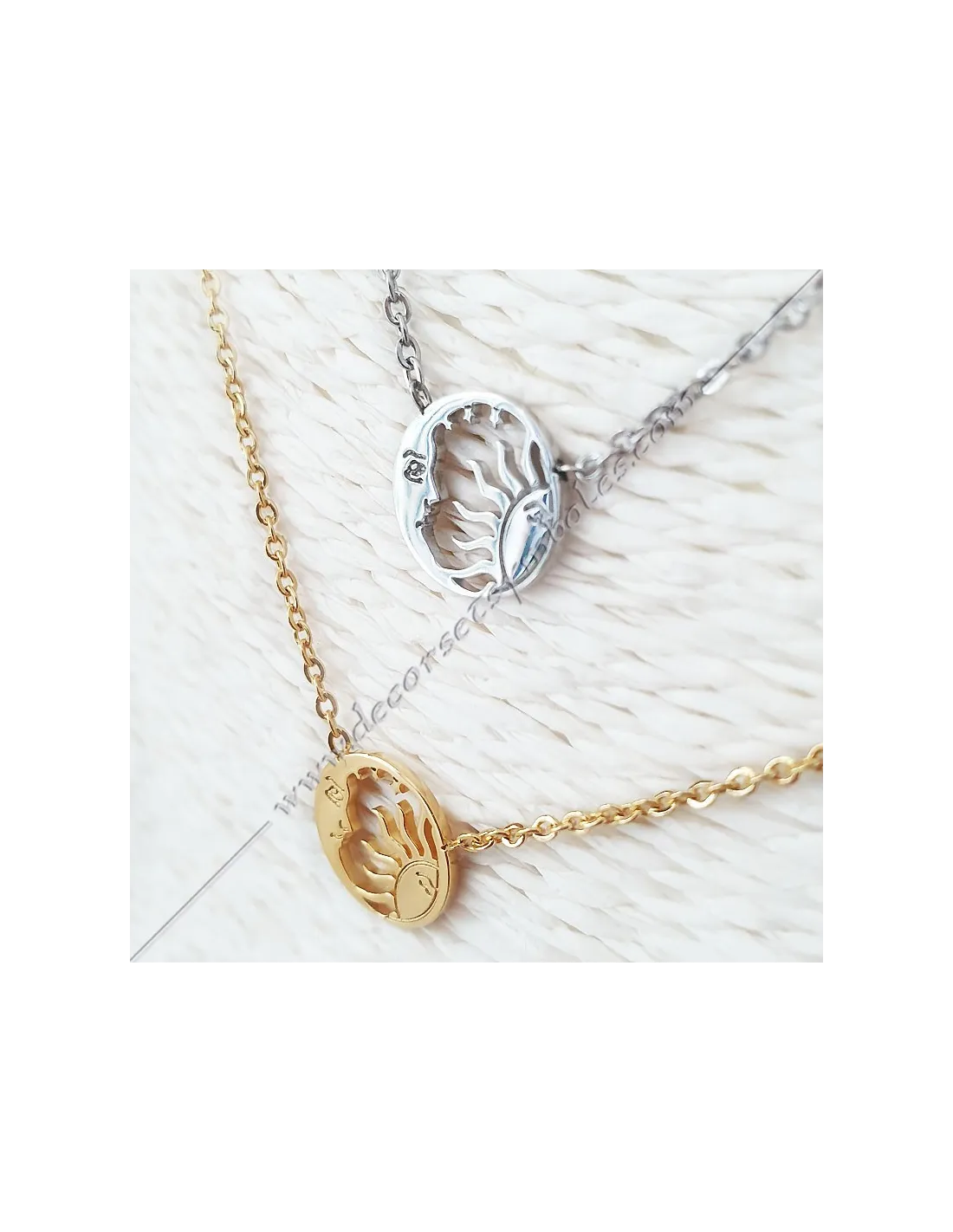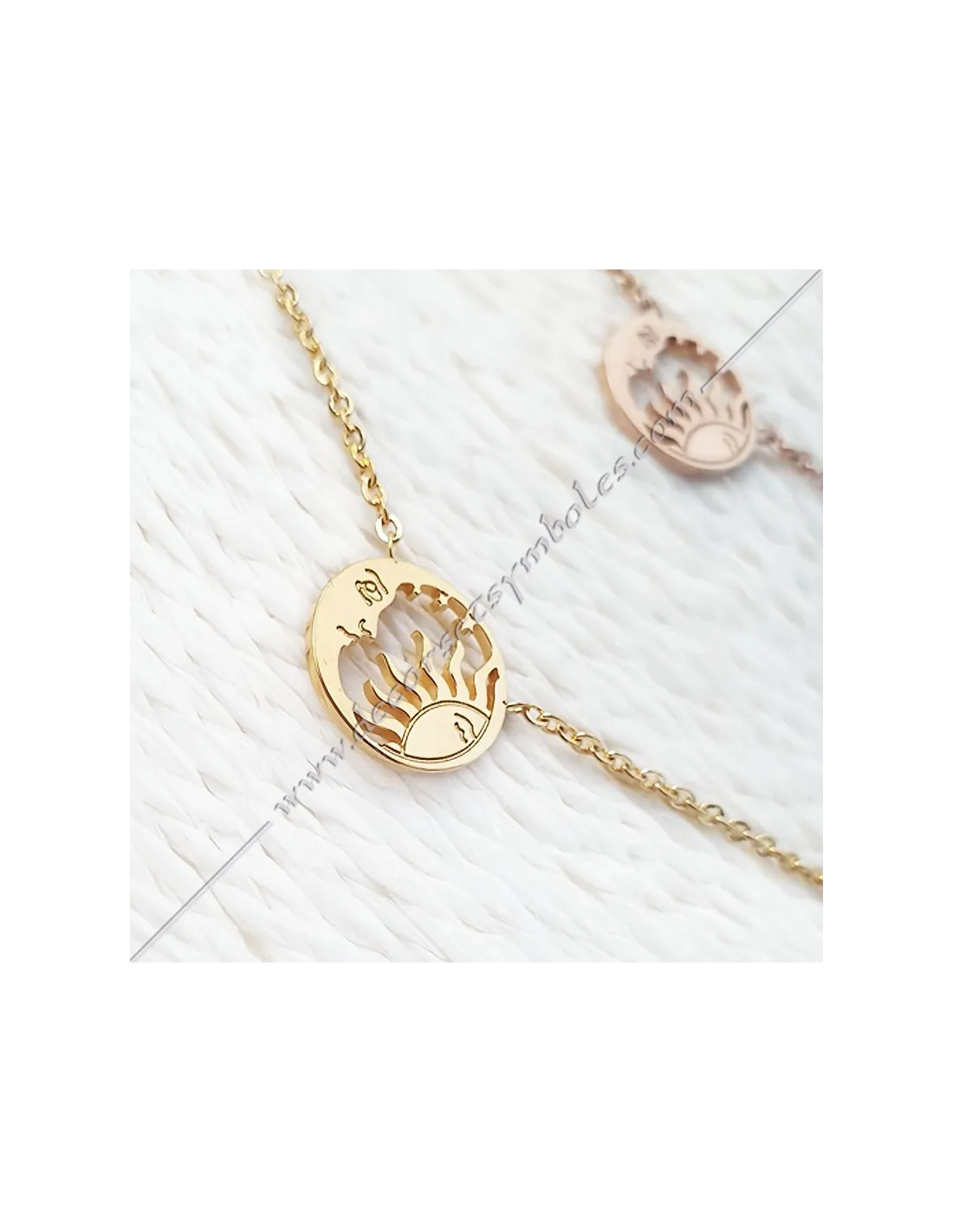 Masonic pendant in stainless steel gilded with fine yellow or pink gold or silver gilded with the Moon and Sun symbols