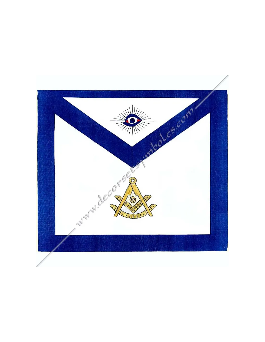 Embroidery: square and compass with gold ruler and blue eye on bib