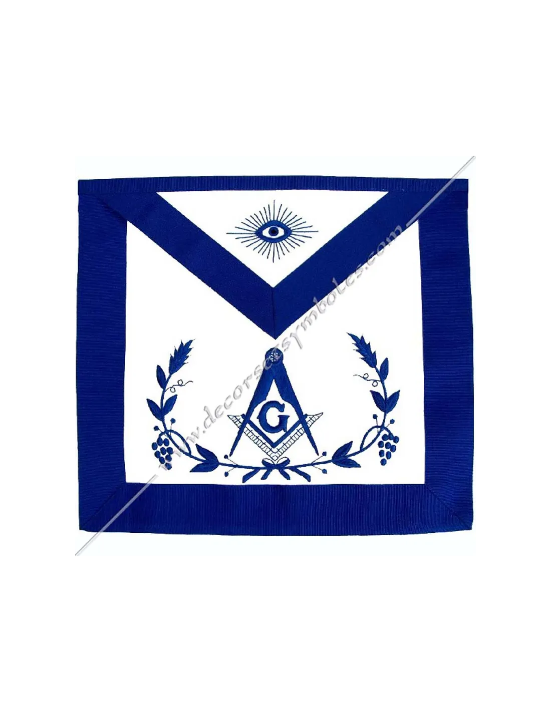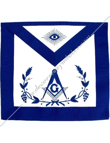 Embroidery: letter G in square and compass in an acacia crown and blue eye on bib