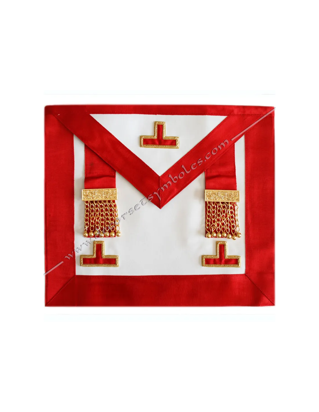 Embroidery: 3 red tassels edged in gold
