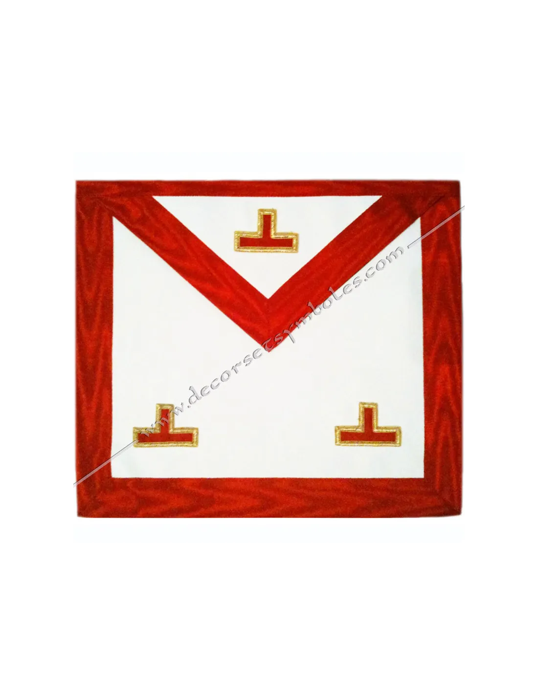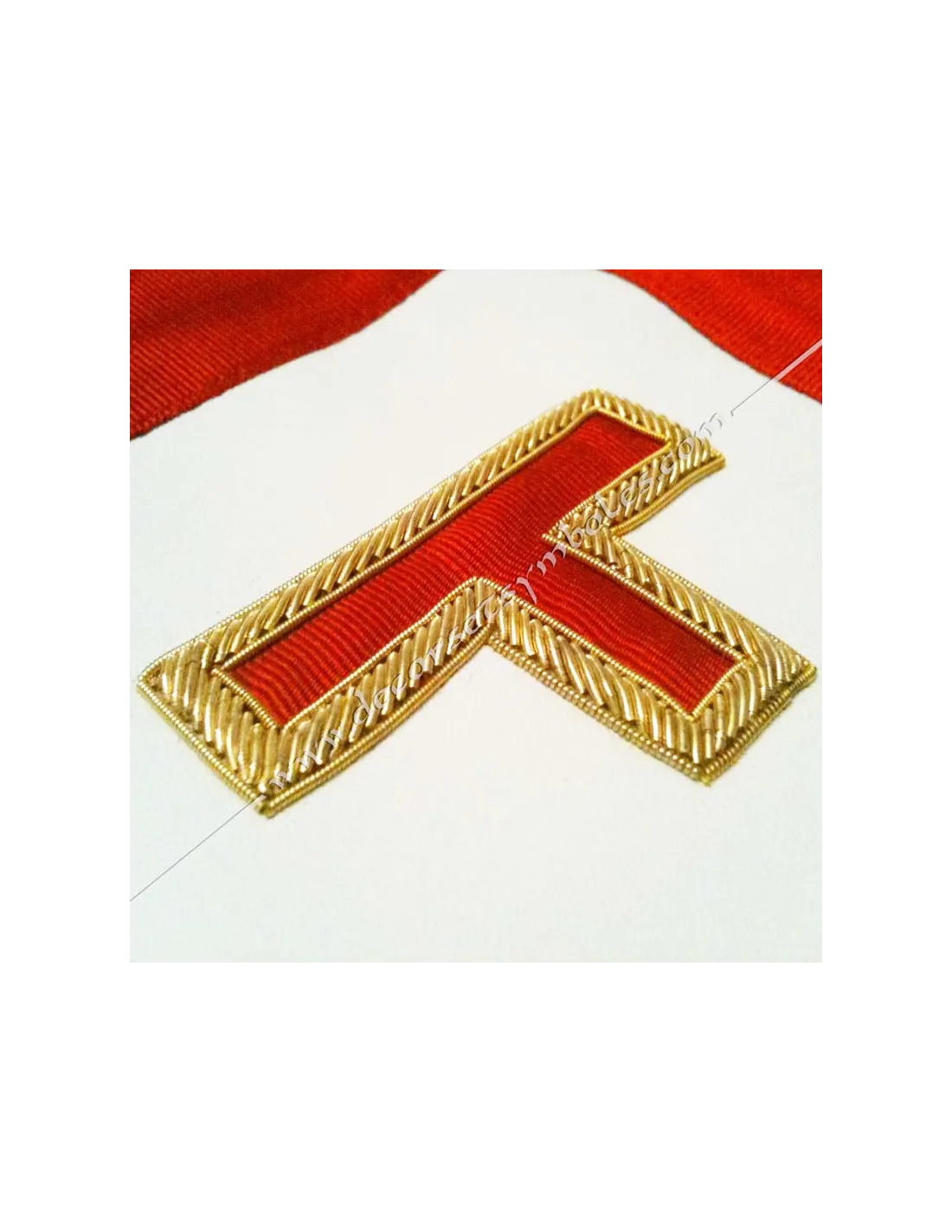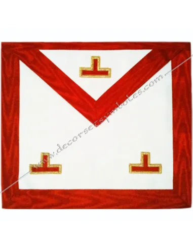 Masonic apron of the Worshipful Master of the AASR in imitation leather with 3 red taus embroidery edged in gold