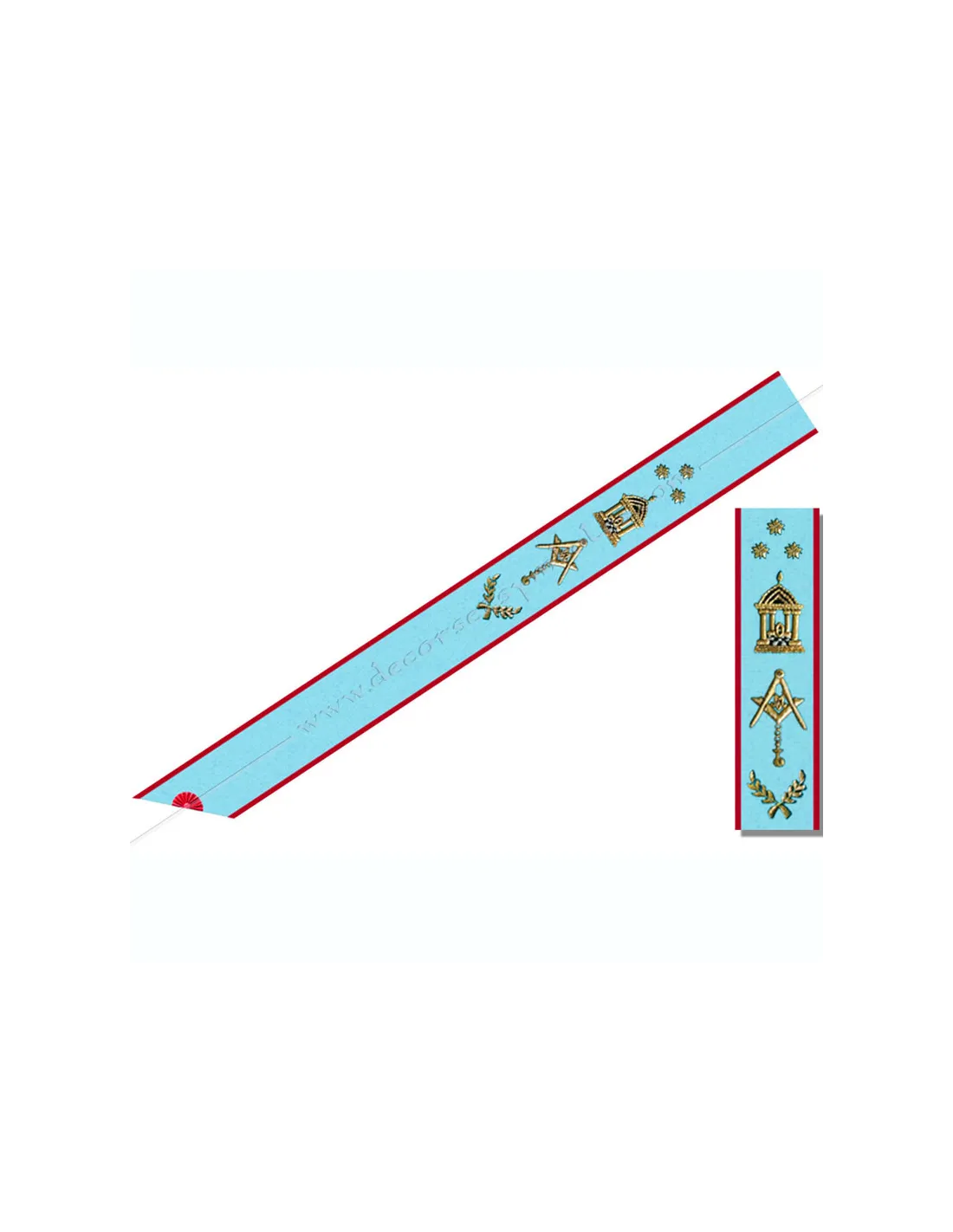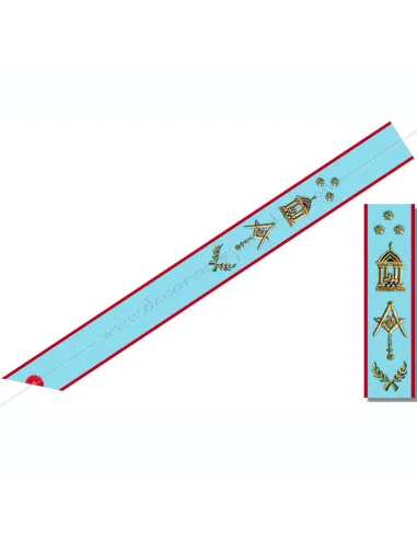 AASR Master Masonic sash in turquoise blue moiré ribbon edged in red