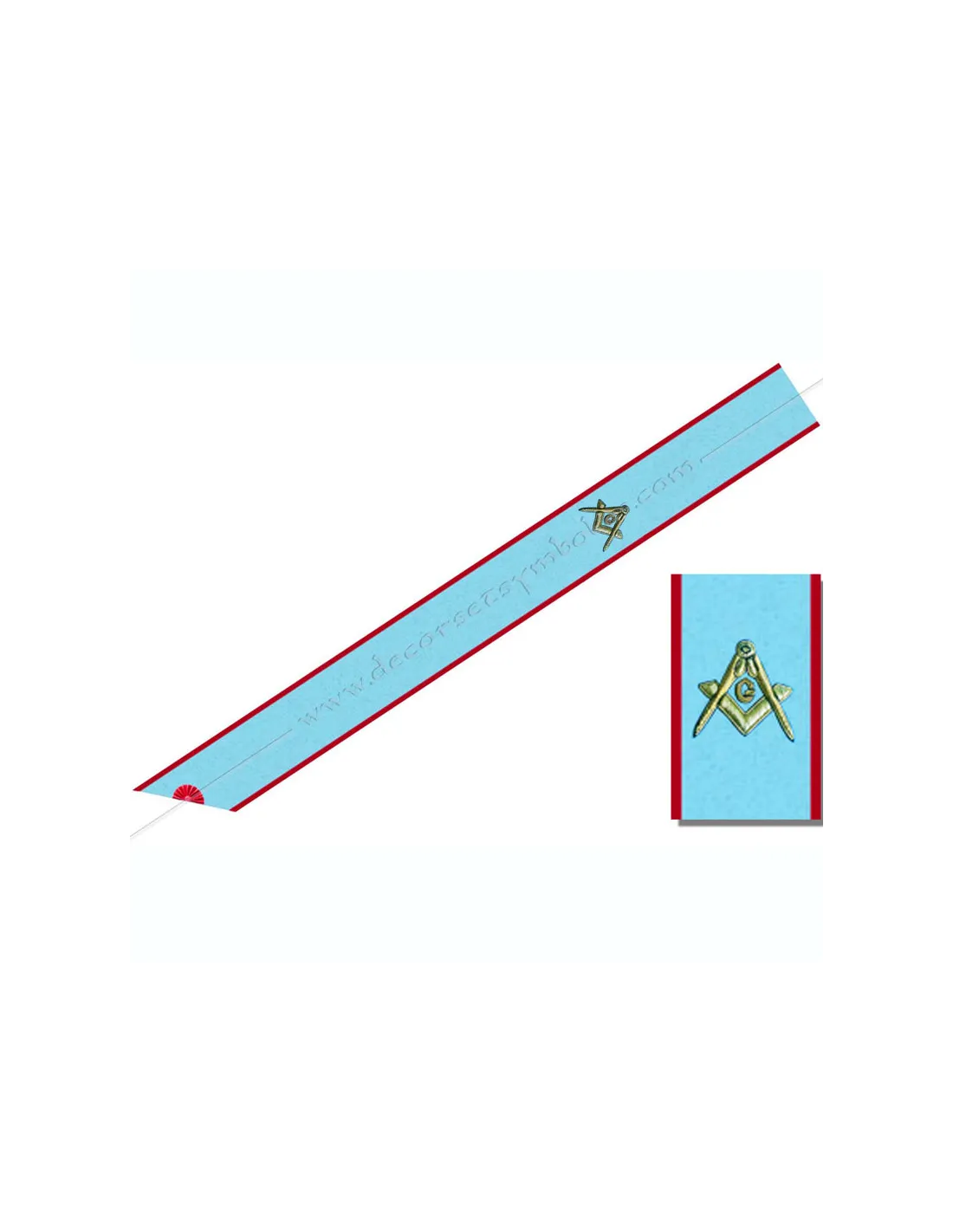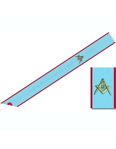 AASR Master Masonic sash in turquoise blue moiré ribbon edged in red