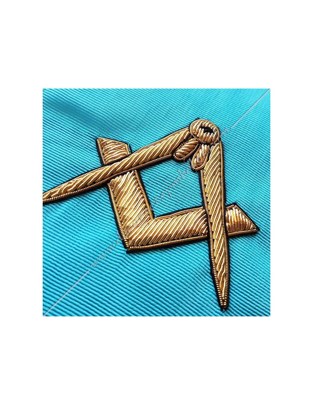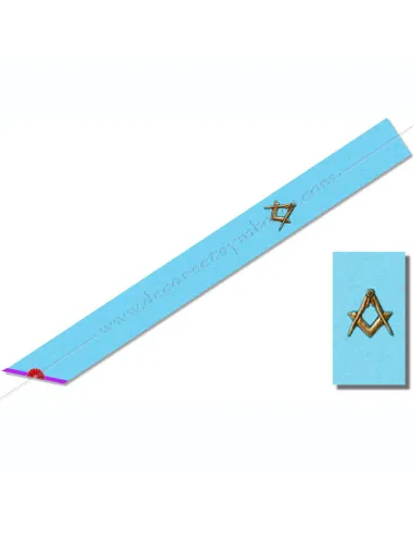 Memphis Misraim Masonic sash in turquoise moiré ribbon with 1 cm purple edging